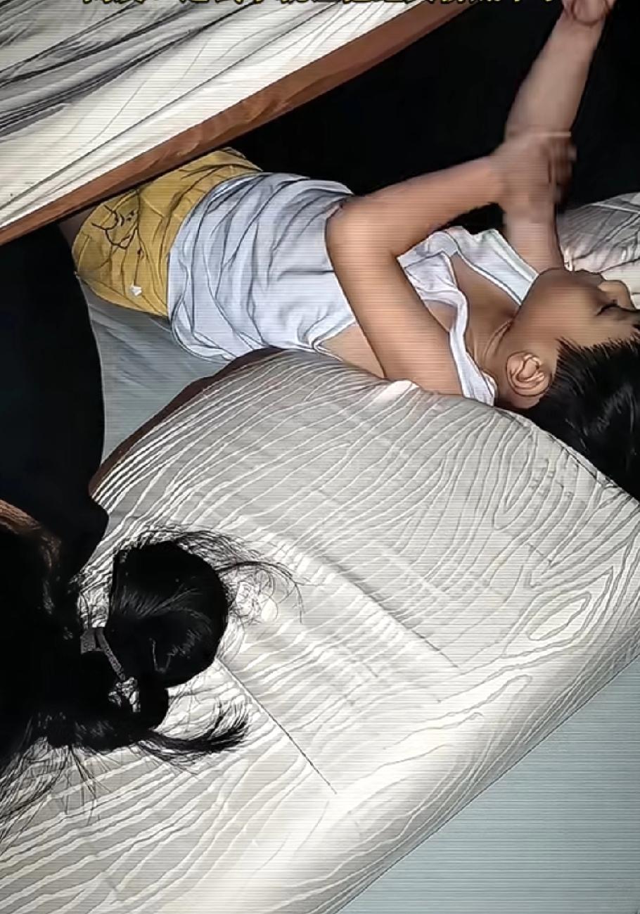 可怜的孩子,睡在爸爸妈妈中间一直说冷,没人相信,谁知道监控证明了孩子的清白,夫妻两个翻身的时候被子绷起来,孩子挨不着被子,就像睡在空旷的桥洞里一样。 别再这样睡了,还不如给孩子一个小被子自己睡的踏实。 睡觉前布置的再稳妥,谁能保证不翻身呢!