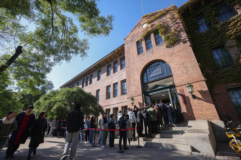 杨振宁先生去世后,清华大学科学馆一楼的缅怀室成了人们寄托哀思的地方。花圈、鲜花摆