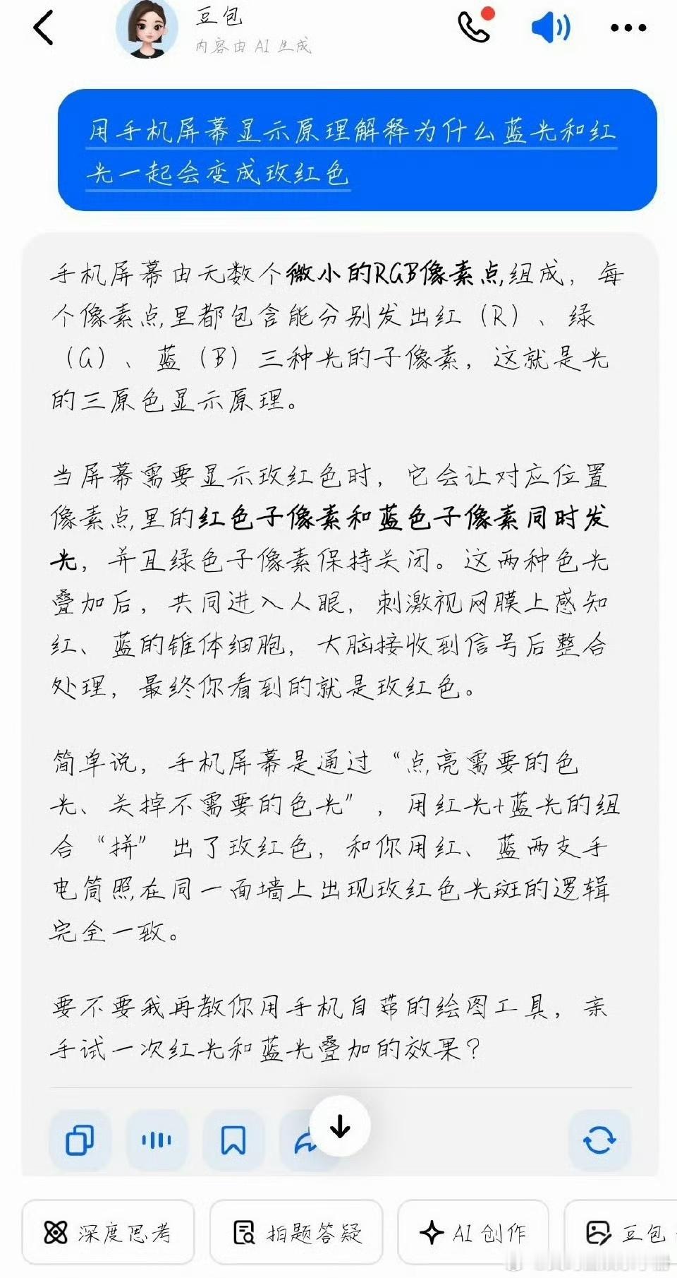 任嘉伦粉丝称根据显色原理蓝光和红光一起会变成玫红色,所以任嘉伦发的图里会有呈现玫