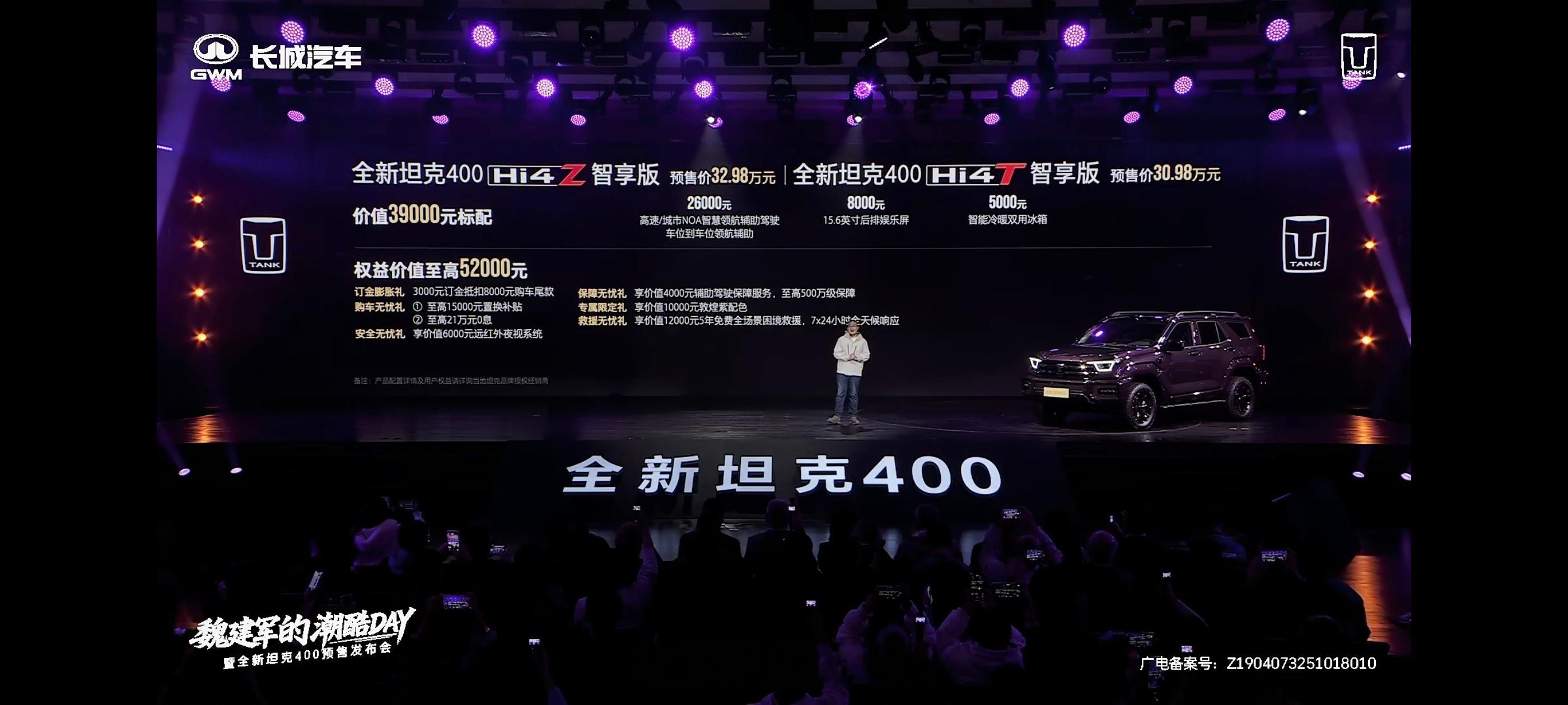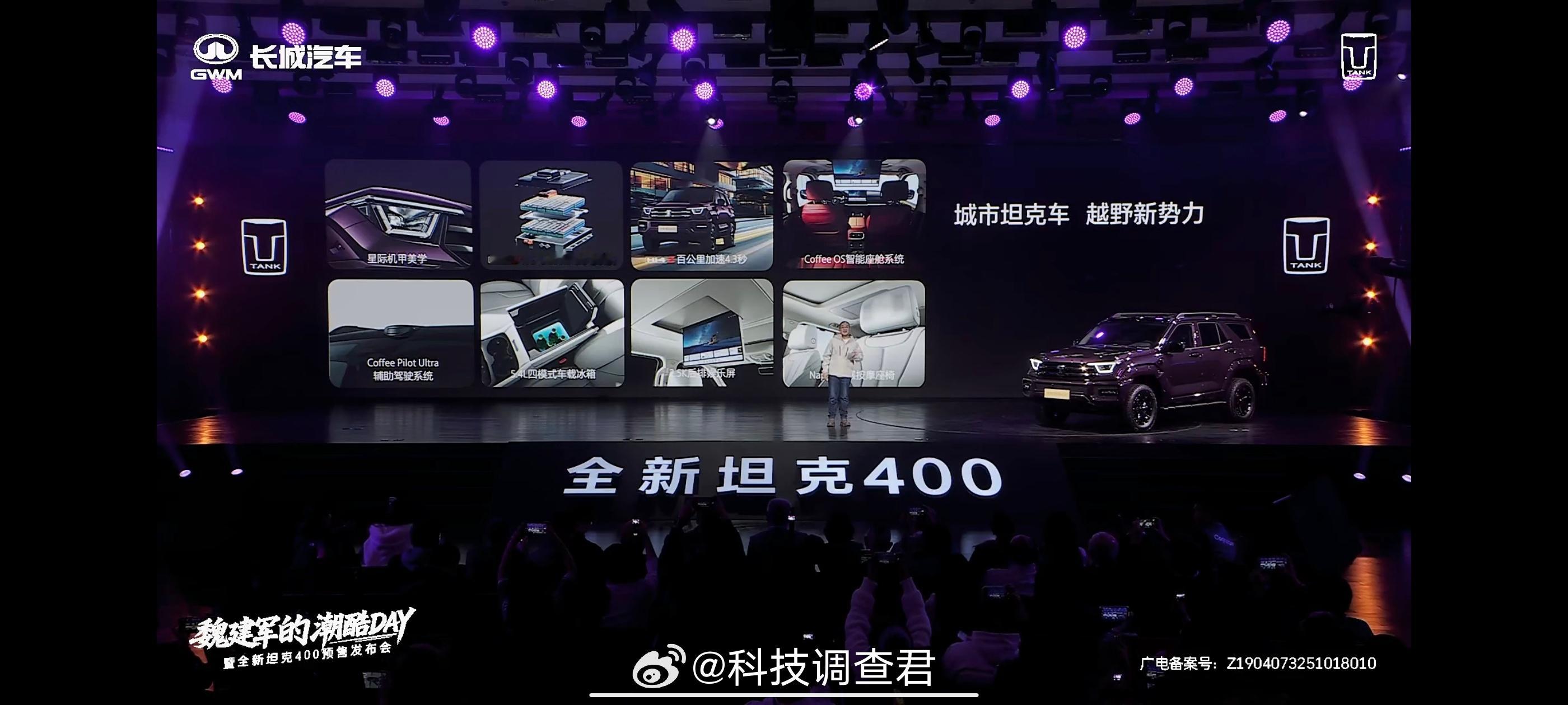 不得不说坦克400这个机甲风的外观颜值是真的很戳年轻人的胃口,并且配置给的也是很足,朋友们觉得这个价格怎么样魏建军共创年轻人的一天潮酷越野新时代魏建军开启去爹味挑战全新坦克400正式预售