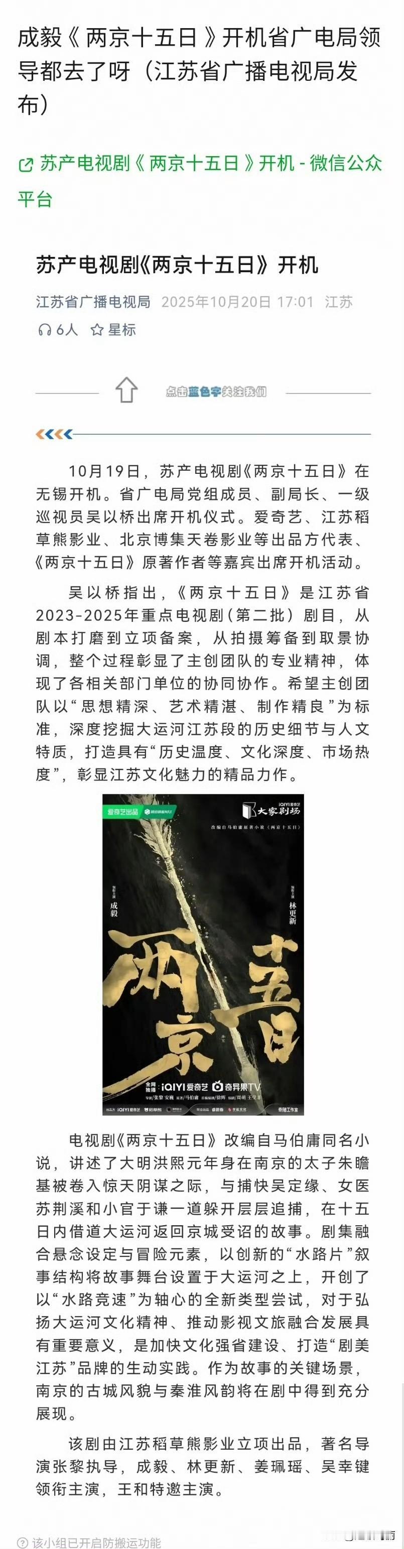 《两京十五日》开机、省广电局领导都去了,这重视程度🐮