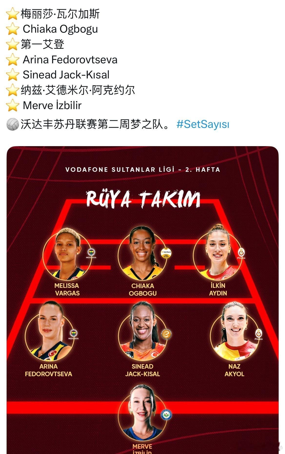 望月体育[超话]土耳其女排联赛 第二周梦之队