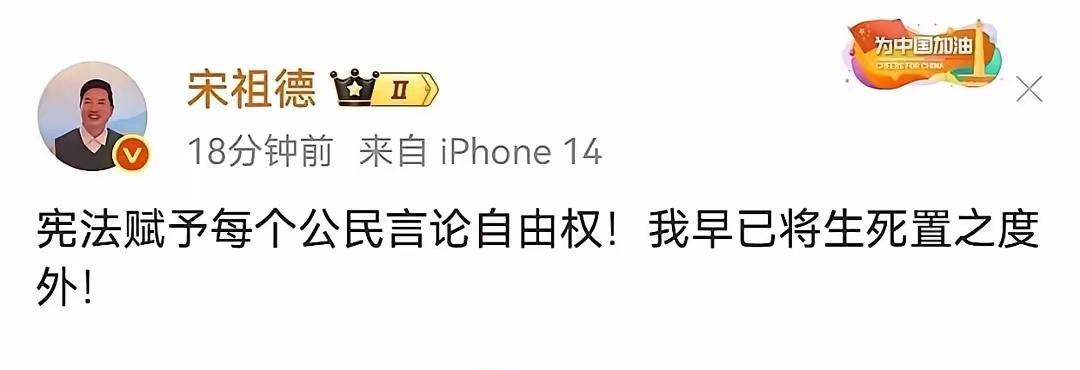 宋祖德老师这是遇到什么威胁了?怎么有种视死如归的感觉?!看他那句“早已将生死置之度外”,真让人捏把汗。 这股狠劲大概率和他最近的处境脱不了关系。一边是被林生斌以诽谤罪告上法庭,即便警方早有通报,他仍因持续发声面临刑事追责。另一边他还在硬刚器官移植黑市这类敏感话题,拿着判决书质问量刑,呼吁重罚,难免得罪人。 有人说他爱炒作,但这次是真的把自己架在了风口。他这“视死如归”更像一种姿态——用极端的决绝守住自己那套“批评逻辑”,哪怕要承担法律后果。 不过话说回来,不管争议多大,敢啃硬骨头的勇气确实少见。你们觉得他这股冲劲是真性情还是另一种炒作?评论区聊聊~