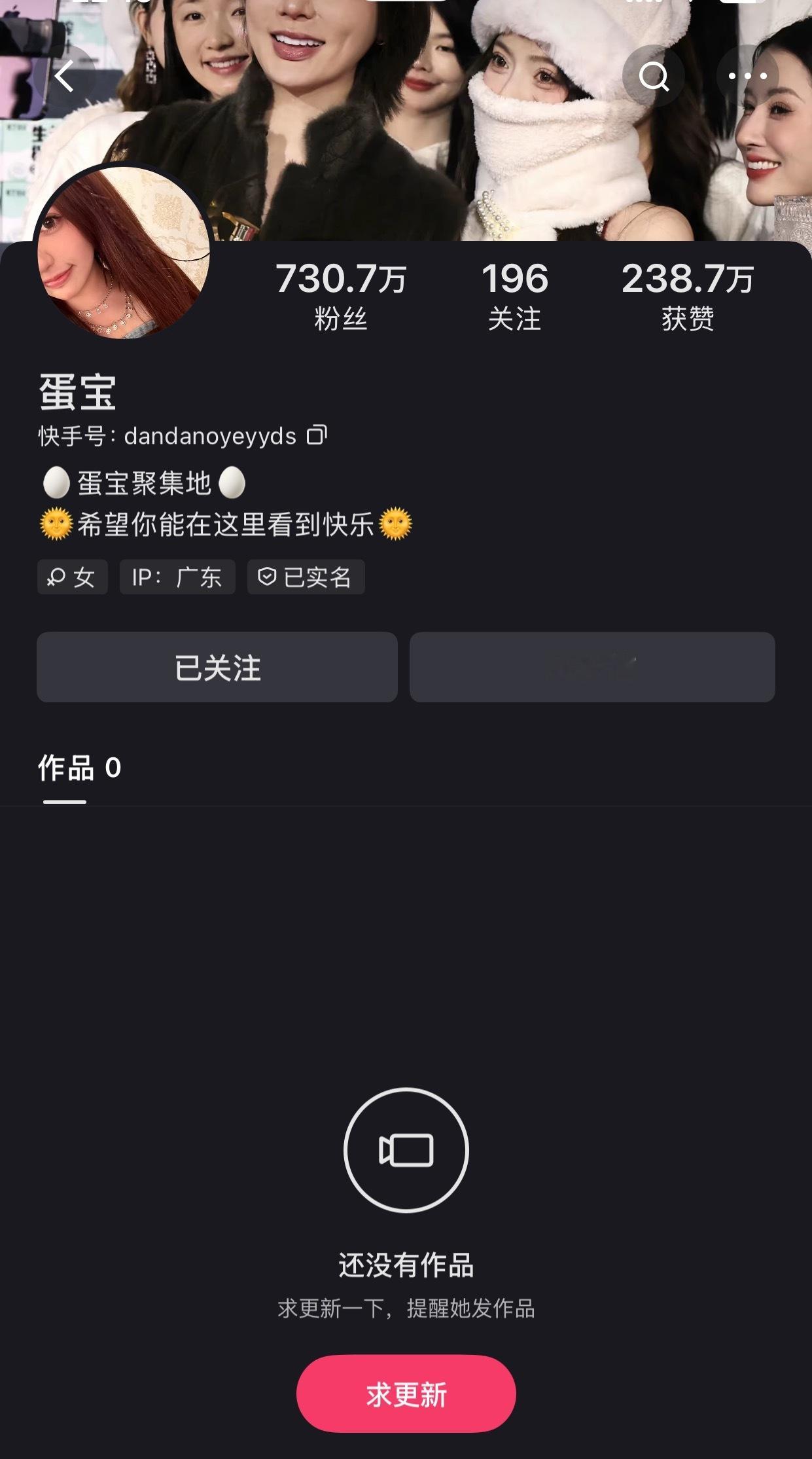 蛋蛋参加快手双选会一句未提感恩辛选和辛巴,另外大号小号清空作品,网友怀疑蛋蛋已自立门户,要是再和师娘同天带货就不言而喻了。[doge]