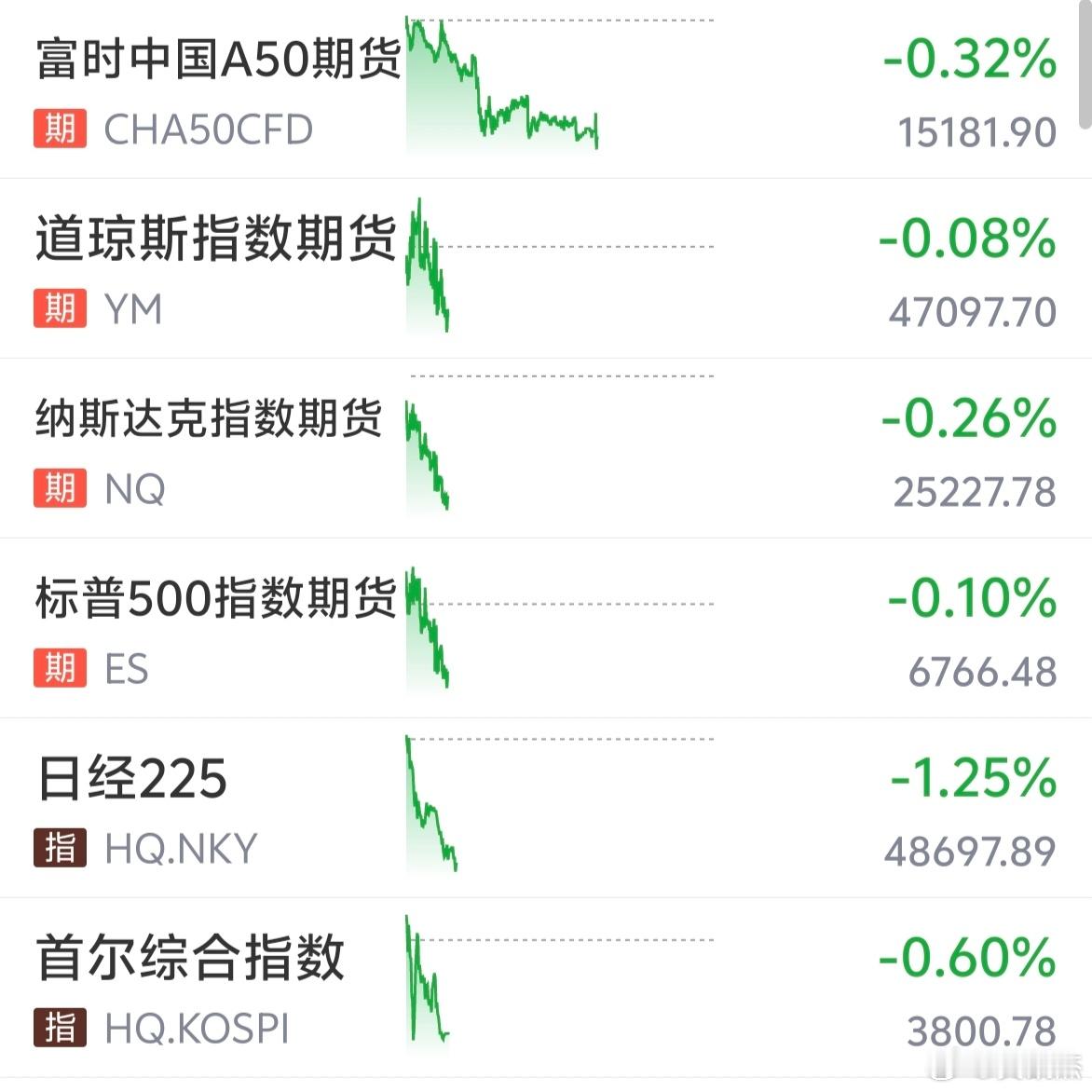 外围一片绿,今天的表演机会留给大A了~~~捧得起来吗?[嘻嘻]