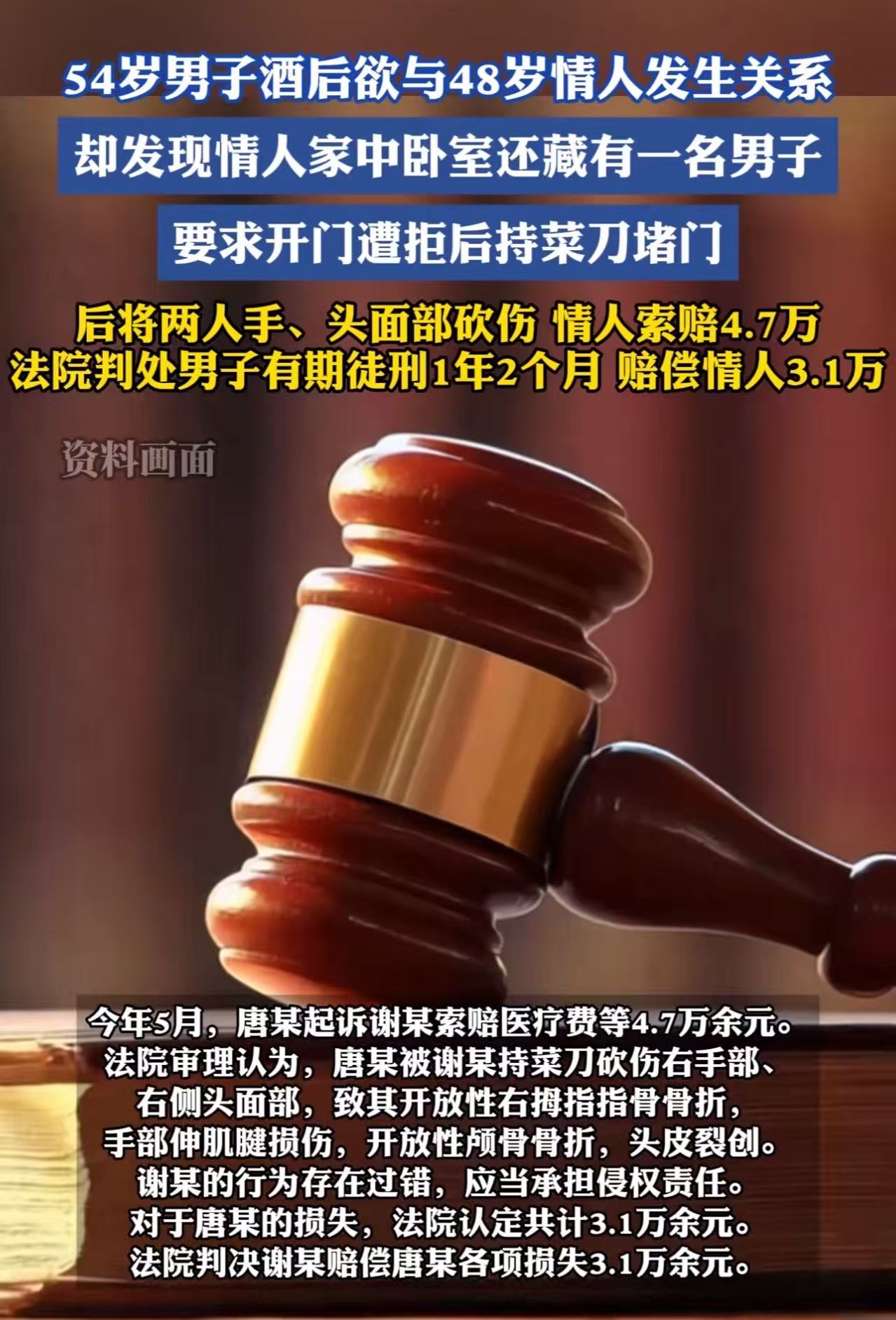 湖南,54岁男子酒后欲与48岁情人发生关系,却发现情人家中卧室还藏有一名男子!男子觉得自己被戴了“绿帽”,恼羞成怒之下,拿菜刀将两人手、头面部砍伤,而结局让男子后悔莫及!