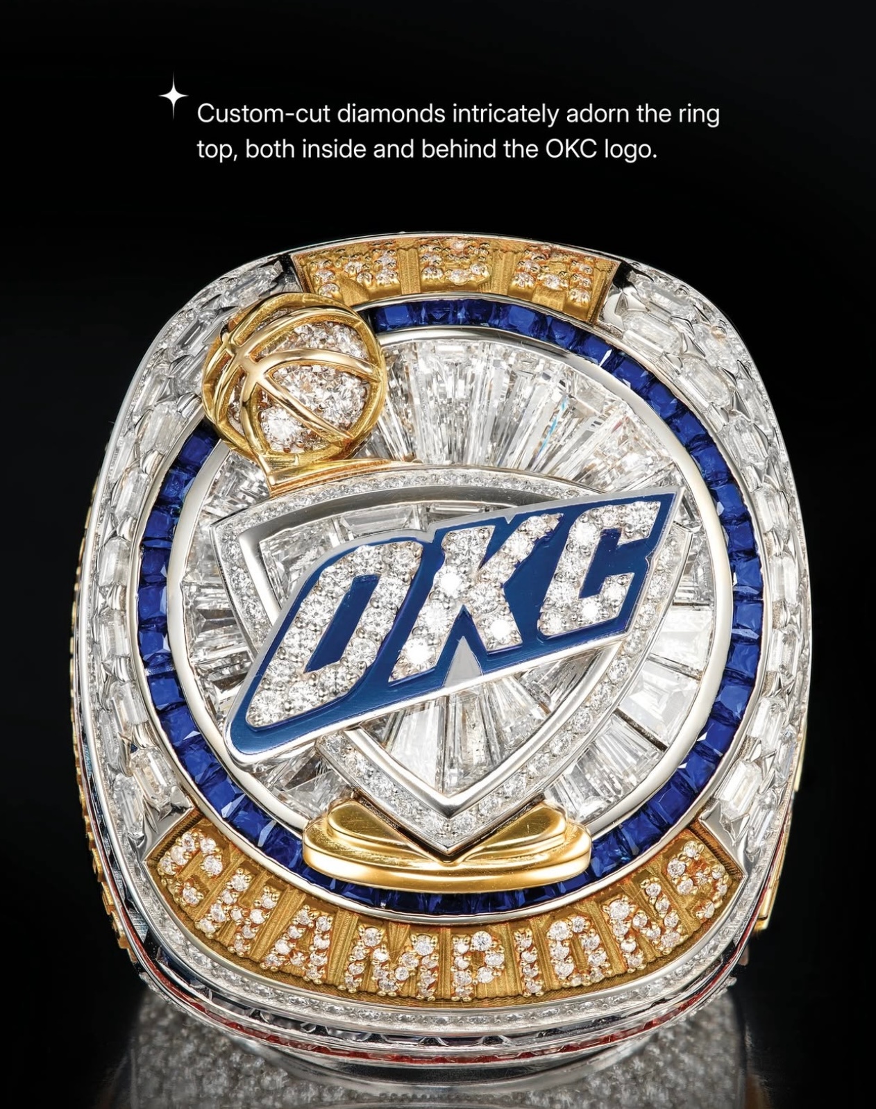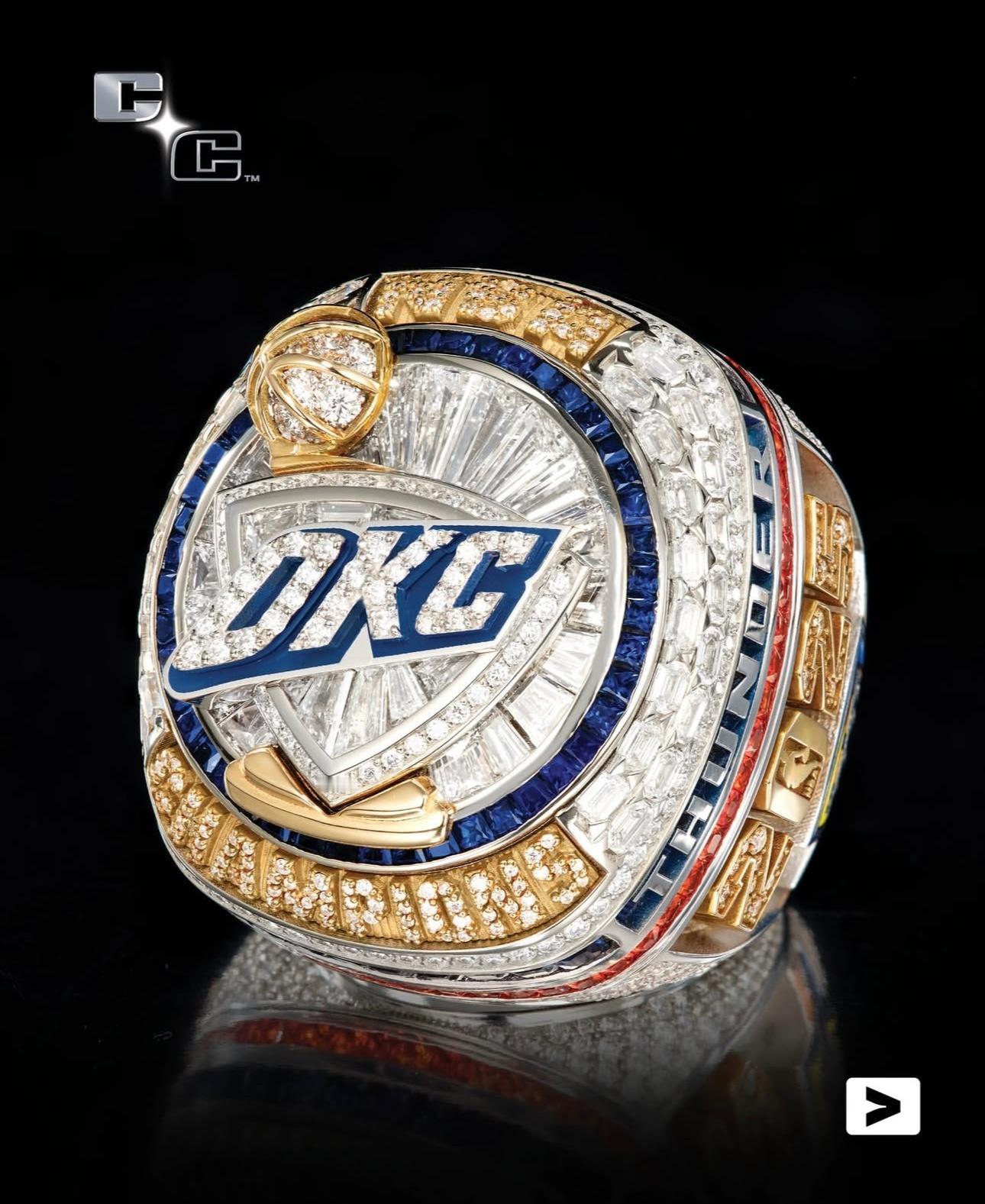闪闪发光!雷霆总冠军戒指特写!太酷了!火箭vs雷霆