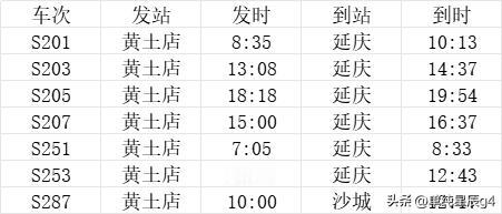 黄土店站至10月24日最后7趟始发列车,10月25日起,黄土店站的列车到发将改为南口站 黄土店站,位于北京市昌平区,距离北京市区约18公里,一直以来一直是北京市域铁路s2线的始发车站,开行和谐长城号市郊列车,最高时速160公里,主要连接黄土店,昌平区,和延庆区,以及一趟列车延伸到河北怀来县的沙城站。 黄土店站每年赏花期间会根据运力安排增开车次,平时工作日车次较少,节假日车次较多。 黄土店站始发列车S201,读“市201次列车”,到达延庆需要一个半小时左右,中途途经南口站八达岭站。 S287黄土店站始发开行至沙城站,停靠南口站,八达岭站,康庄站,需要两个半小时。 而新的始发车站南口站距离黄土店站约30公里,位于昌平城区西侧,工作日开行两趟车,节假日开行三趟车,南口站将增开公交专线,如北京城区至延庆方向也可乘坐北京北站至延庆站到京张高铁列车。 北京市郊铁路东北环线开工建设,将衔接朝阳区光华路站至昌平区南口站的路段,途经北京朝阳站。