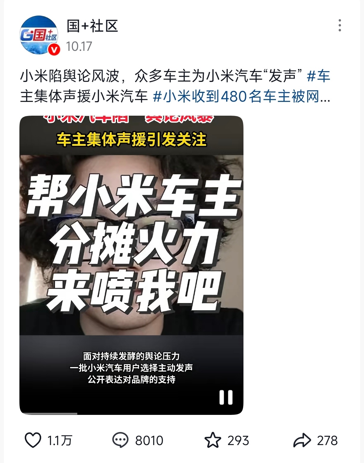 如果你认为“小米风评急转直下”是网络自发,那么各品牌车主声援小米车主应该也是自发自觉的吧。