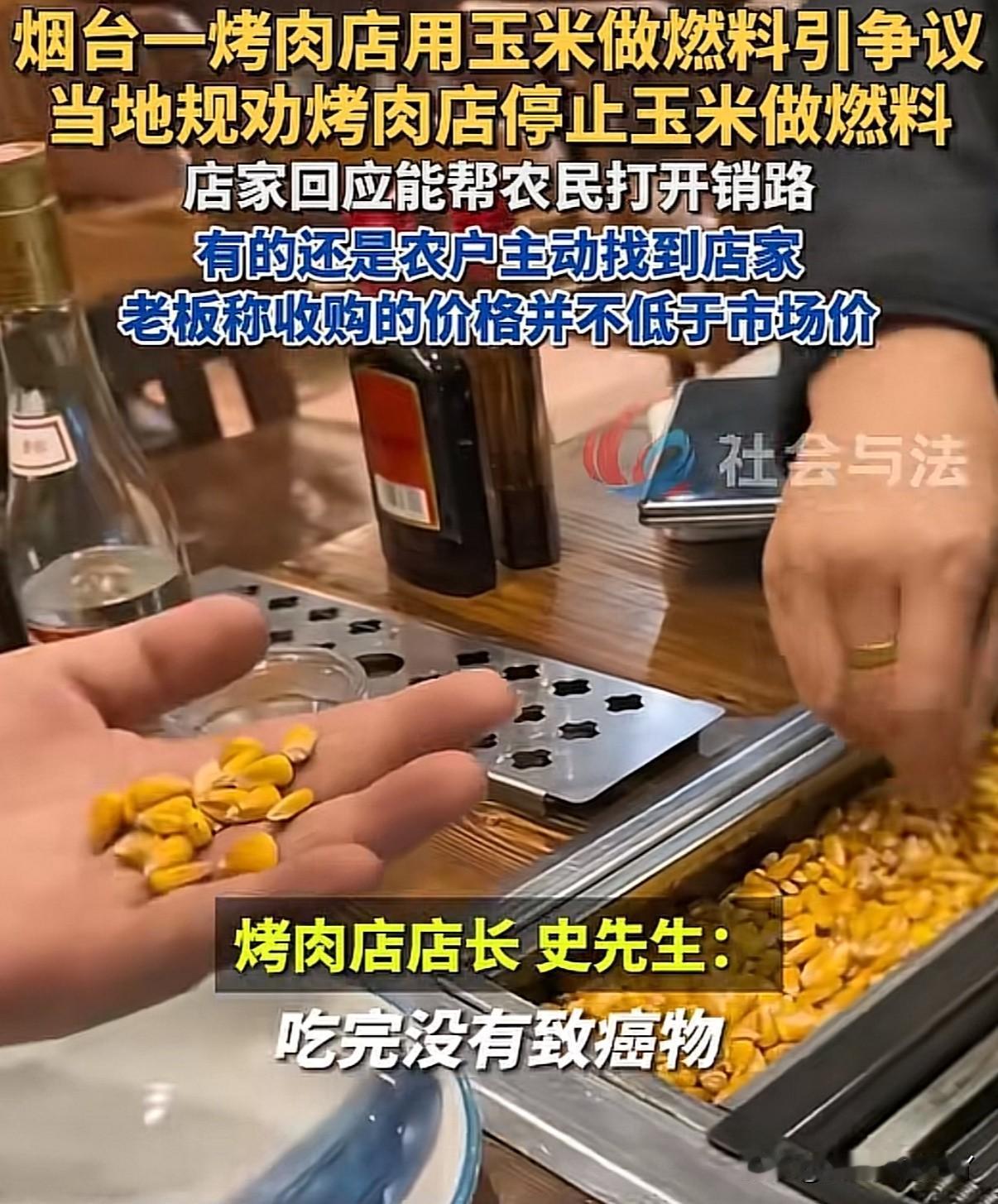 烤肉店用玉米做燃料究竟算是糟蹋粮食还是为农民提供销路? 10月20号山东烟台一网友发帖称烤肉店内烤炉里用来起火燃烧的材料竟然是玉米粒,视频发出引来质疑声不断,有人认为好好的玉米用来烧这是公然浪费粮食 烤肉店老板称从开店就一直烧的玉米已经好几年了,没想到这次发到网上引起关注。玉米都是从农民手里以正常市价收购来的,老板说烧玉米比烧炭更便宜而且还环保健康。这几年什么都涨价就是粮食没涨价他也是帮农民打开销路 在引发争议后当地有关部门表示已经出面,目前烤肉店已经停止烧玉米了 对此事大家怎么看呢?
