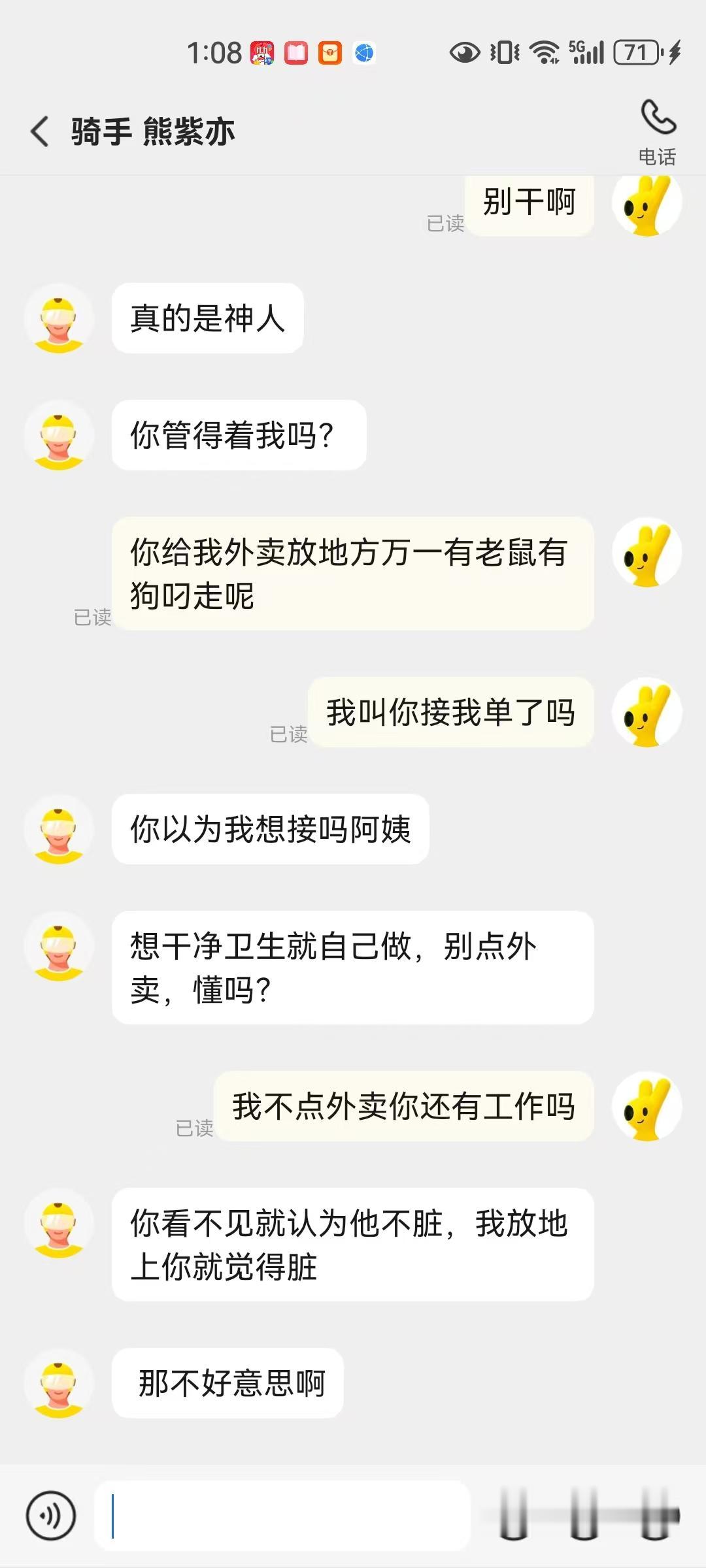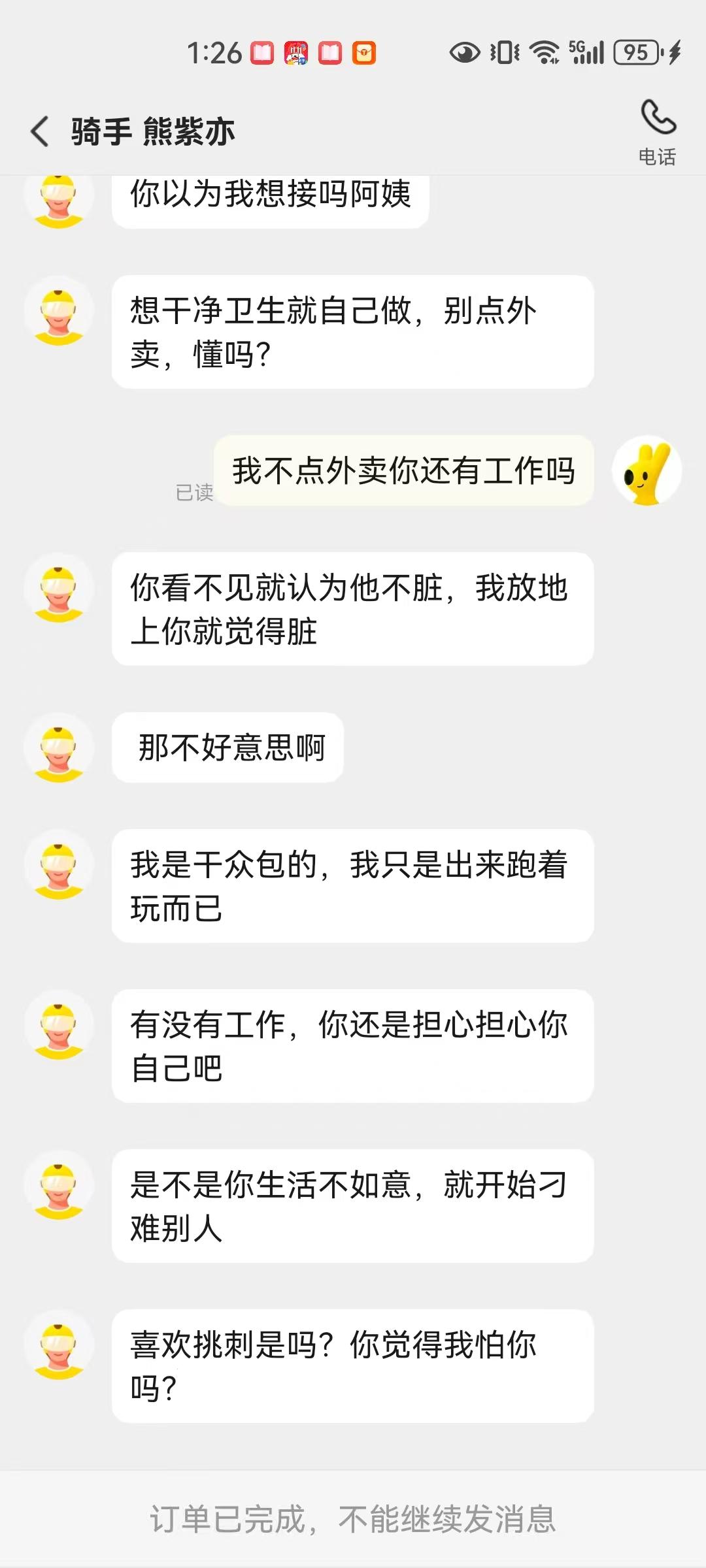 美团骑手送餐食直接给扔地上还言语攻击,这该怎么整治。 2025年10月22日上午