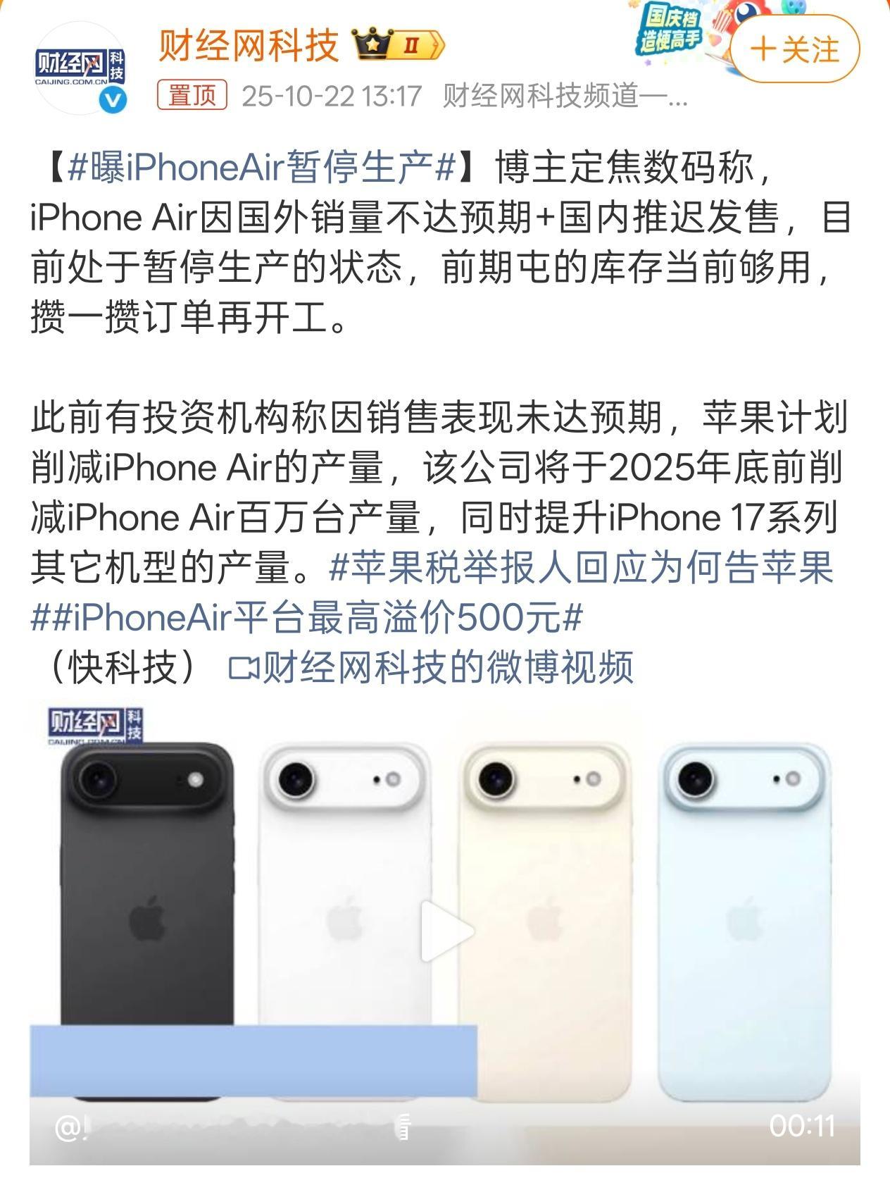 曝iPhoneAir暂停生产 为了轻薄把拍照、续航、扬声器都牺牲了,价格还贵,能卖好就怪了 ​​​