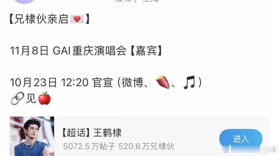 王鹤棣 官宣GAI演唱会重庆站嘉宾!11.08,燥侯舞台棣[太开心][鼓掌][太
