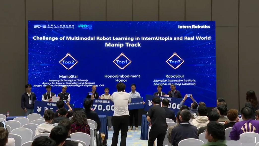 IROS 2025“桃源”真实机器人学习挑战赛-Manipulation操作挑战赛中,荣耀机器人团队从包括麻省理工学院(MIT)、南洋理工大学(NTU)、中国科学技术大学、上海交通大学在内的全球100 +支顶尖队伍中脱颖而出,以任务操作成功率领先第二名超30个百分点的大幅优势夺冠,成绩更载入该赛道标杆记录。荣耀机器人获IROS2025桃源挑战赛冠军