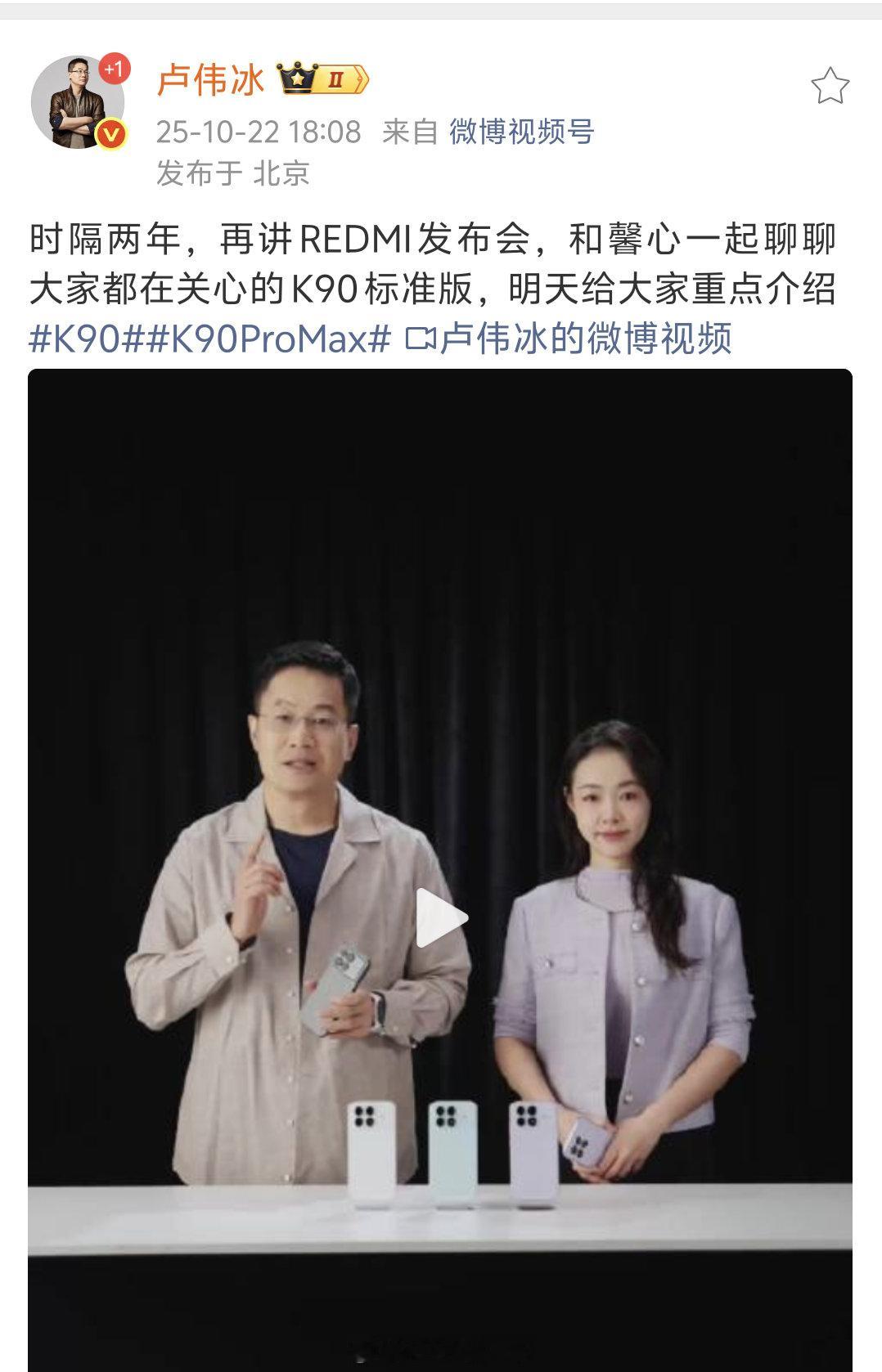 卢伟冰时隔2年再讲红米发布会 卢总再回到红米的主讲台,说实话才有红米的感觉,红米就是要更接地气一些,我都能想象到在说REDMI K90 Pro Max时卢总要硬刚的气势了,你要战那便战,现在就是自我革命[喵喵]