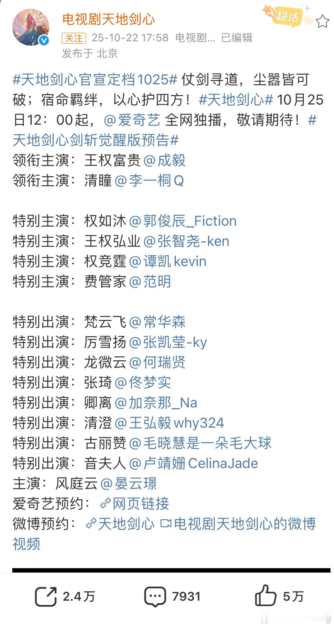 哦莫…成毅 李一桐天地剑心就这么水灵灵的定档10.25了…