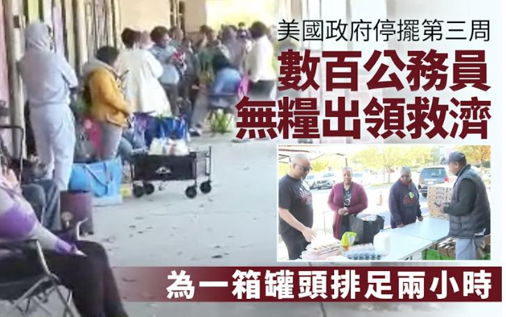 美国商务部雇员领救济粮 因美国政府停摆已进入第三周,大约140万名被迫休假或返无薪工的联邦雇员受影响。有人因此不得不走上街头领取救济,主办方指仅21日至少有200至300名联邦雇员到场,还有社工惊讶人数众多,感到难以置信。 美国商务部旗下名为农村出口中心(The Rural Export Center)担任分析师的Summer Kerksick来到于马里兰州举办的救济活动中领取食物,现场大排长龙,她耗费两小时才领取到一箱免费的罐头。 临近月尾,她开始担忧起下周就要缴付的房租,不禁叹息:“我这个月还没领工资,所以免费食品与杂货非常重要”,这种处境也引发她进一步的焦虑:“现在我得省吃俭用了”。