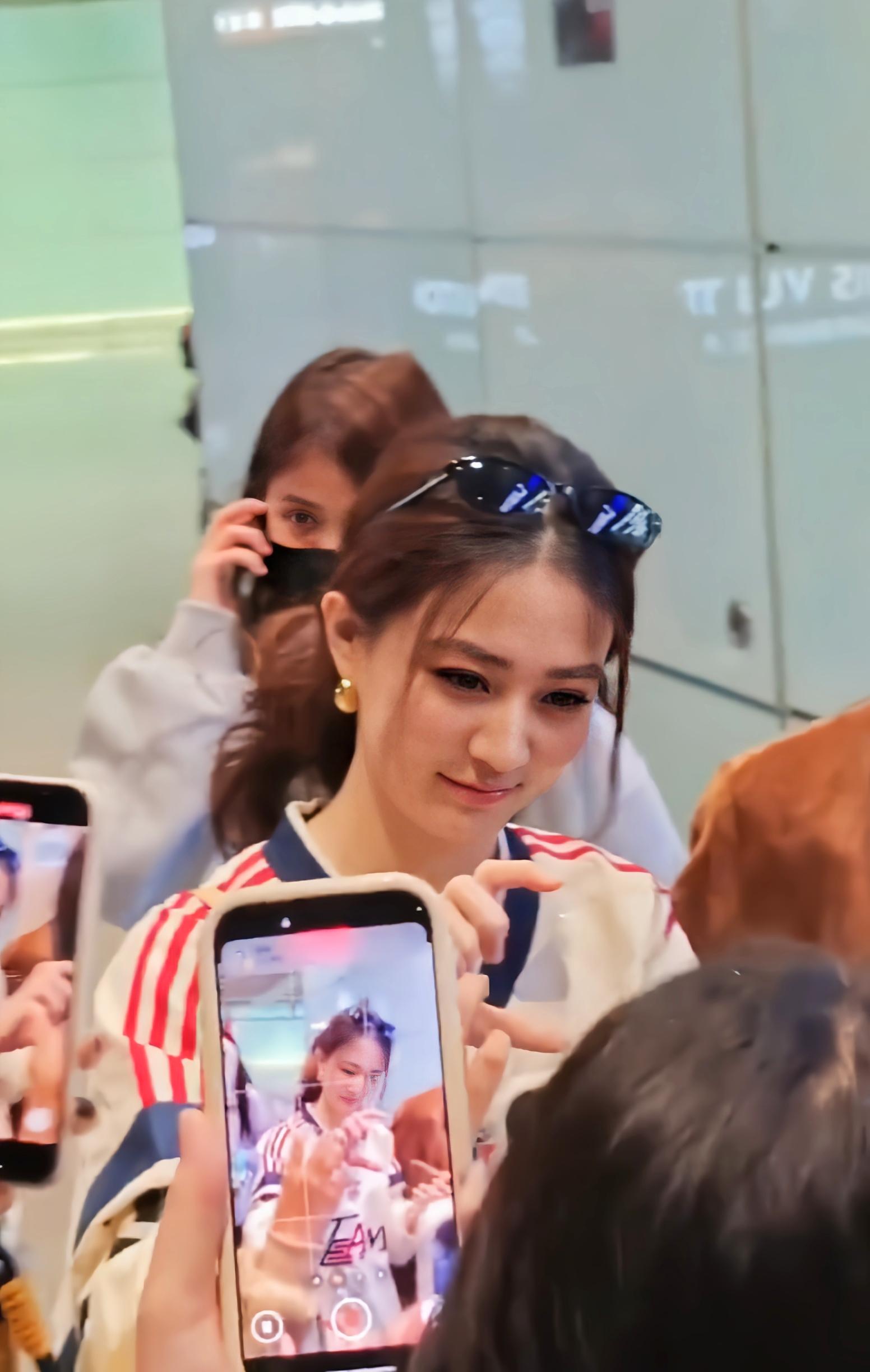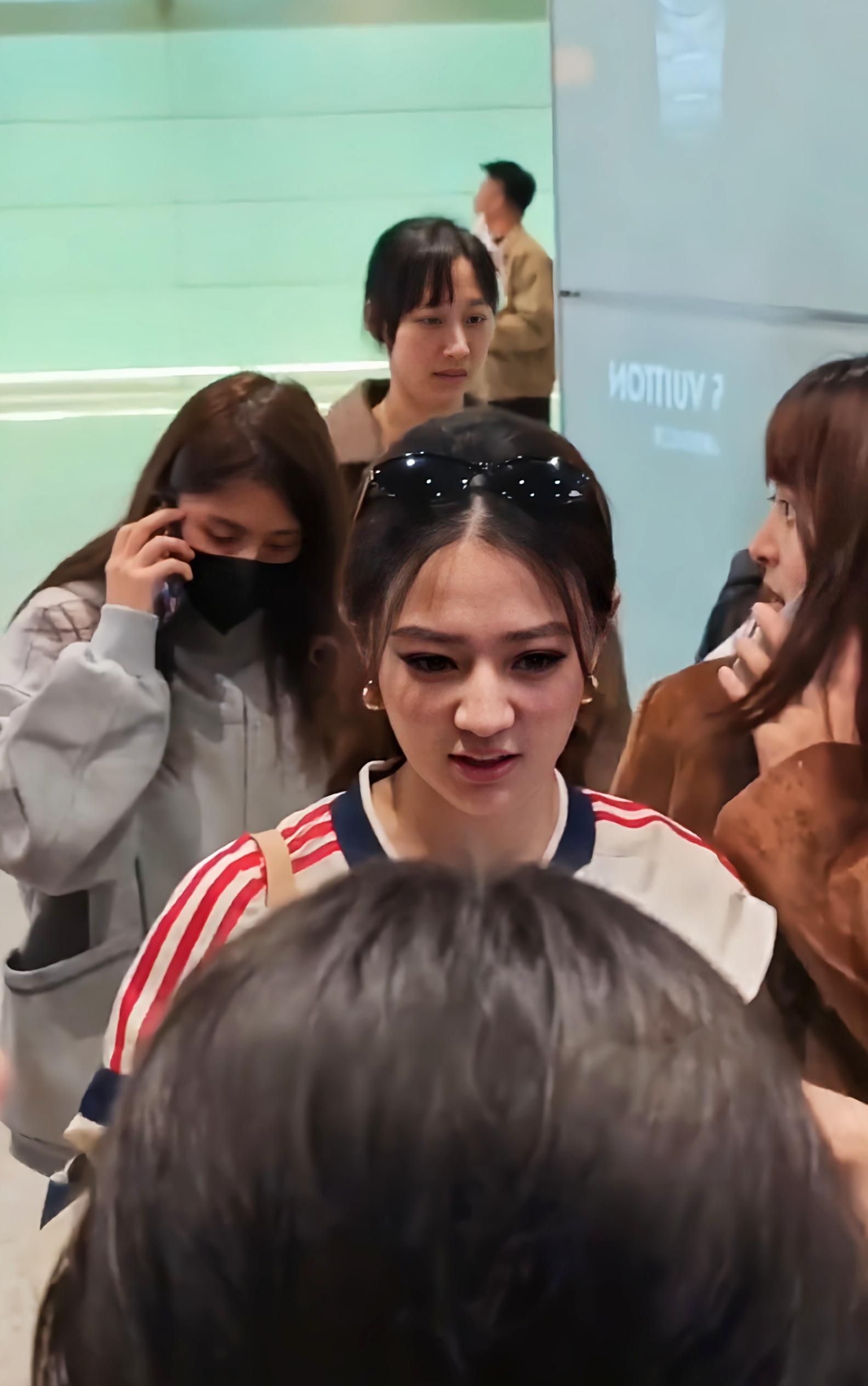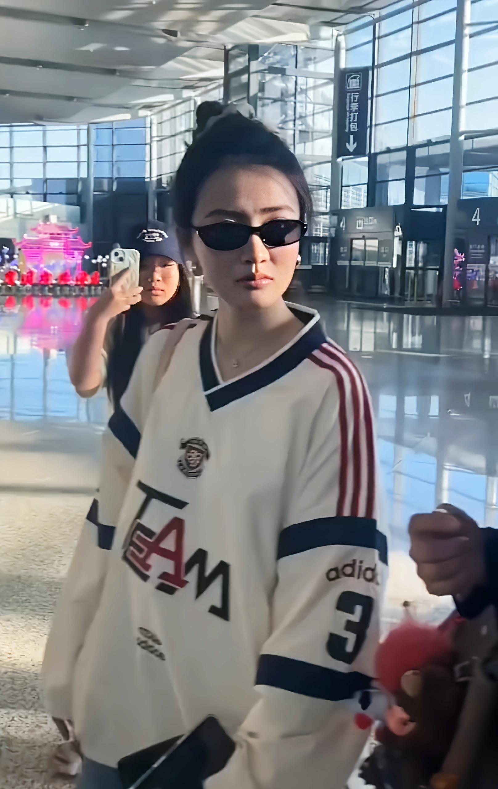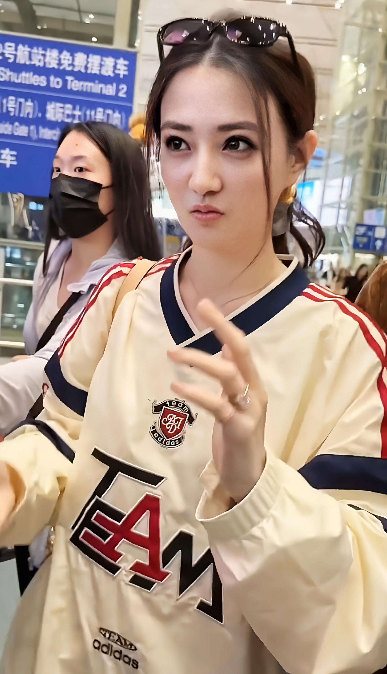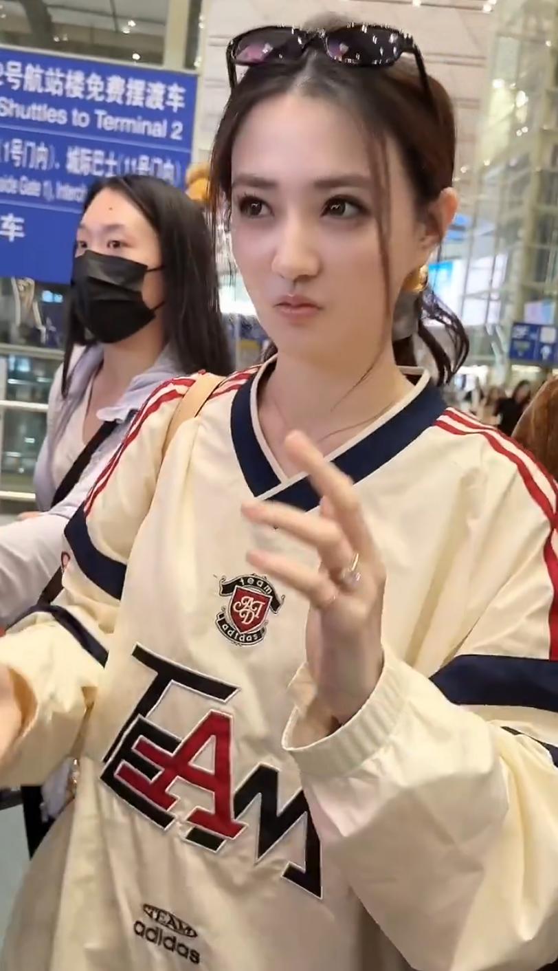 张天爱跟素人合影,胯真的好宽,大宅院似的