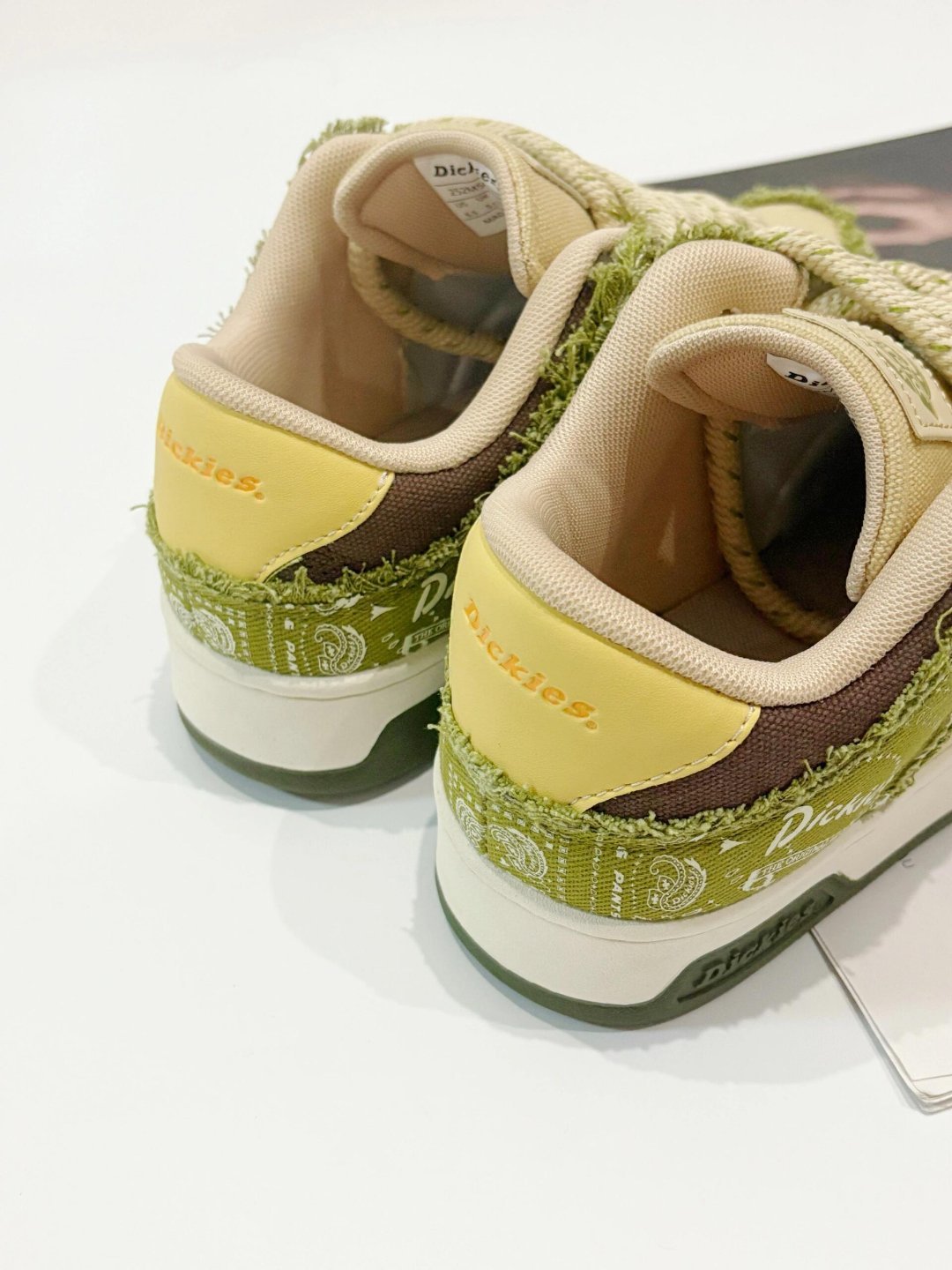 最近挖到宝了啊,Dickies这双面包鞋也太会了吧。牛油果绿和米白拼接得刚刚好,清爽又不单调,看着就很舒服。