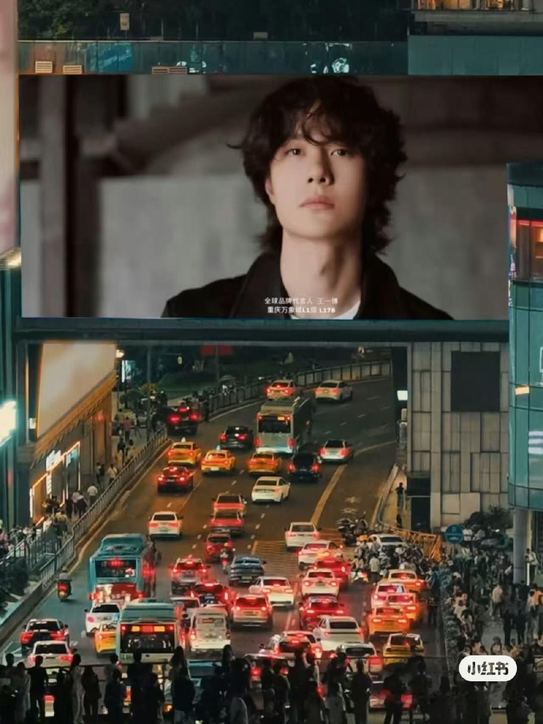 王一博重庆大屏排面 好适合大屏幕的一张脸!王一博重庆的大屏地广太绝啦!