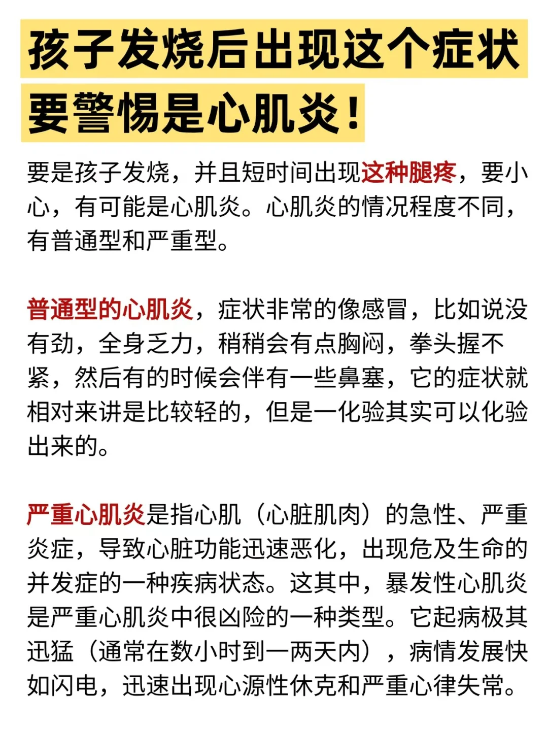 普通型心肌炎,家长可以不用紧张,让孩子好好休息,注意不要激烈运动。万一是严重心肌炎,这就是一种起病急、病情重、治疗费用高昂的凶险疾病。