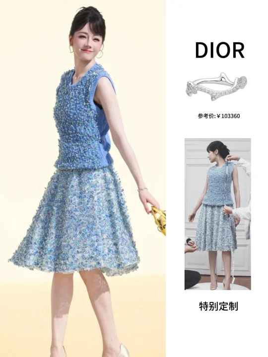 杨颖这身“叶脉”礼服太绝了!立体剪裁像把森林穿在身上,不管是短款的灵动还是长款的