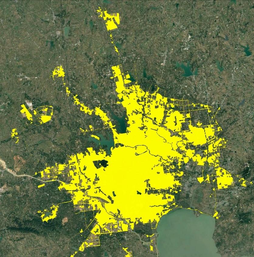 实测建成区(合肥) 测得合肥建成区846.10k㎡,实力不俗。 合肥在近几年扩展