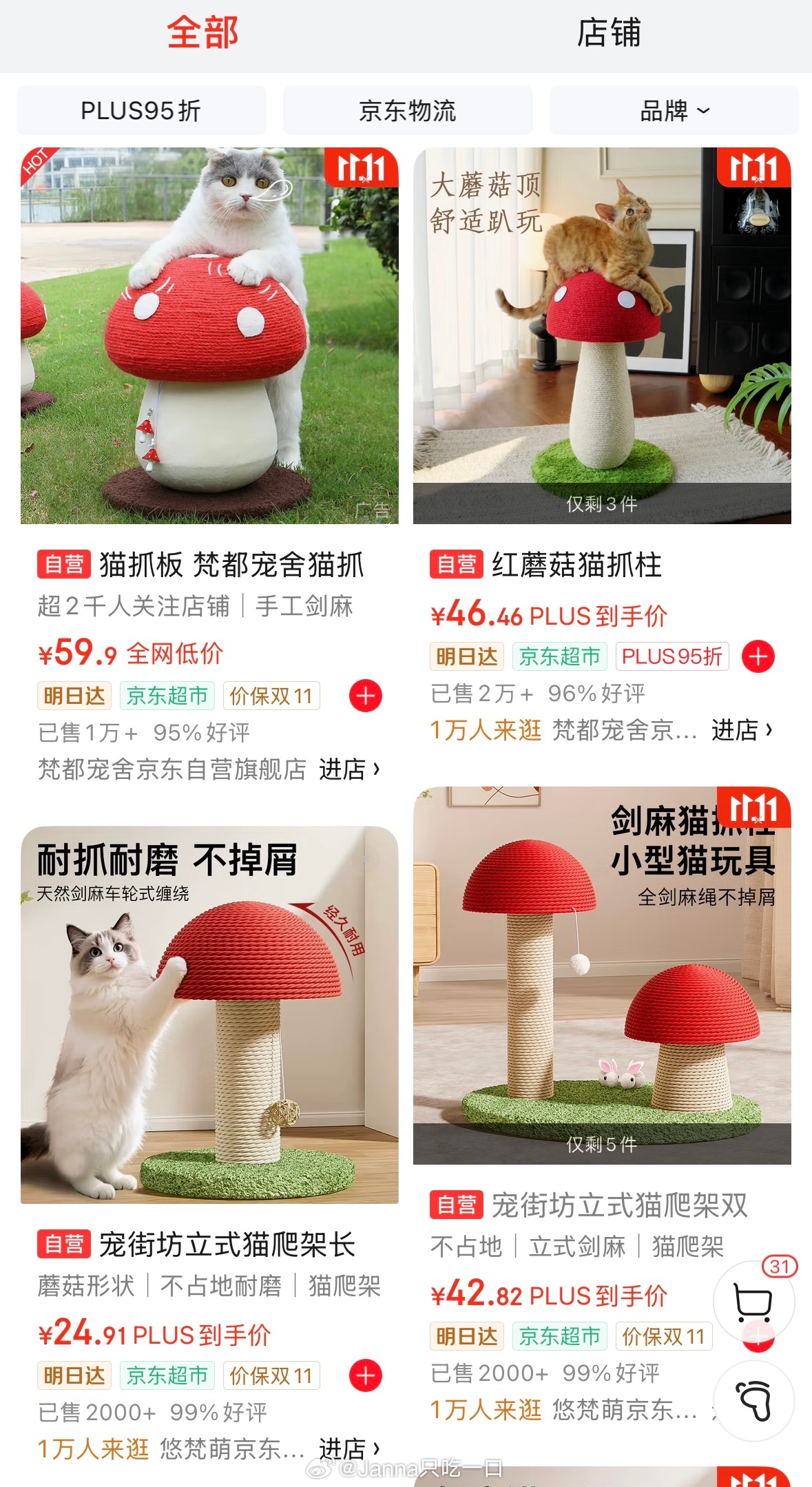 果然!能请来这么多明星的局不简单 啊!刘宇宁同款的宠物玩具我也要给我家猫猫和狗子安排上!!每年给自己买买买的同时肯定也少不了他们~在京东超市的宠物生活频道里真的挑花了眼…酥酥的猫粮猫砂和叮叮的狗零食我已经预备备了~这次玩具也狠狠安排上[求关注]蘑菇猫抓板买了个小的他很喜欢,这次把大的也给他买回来!