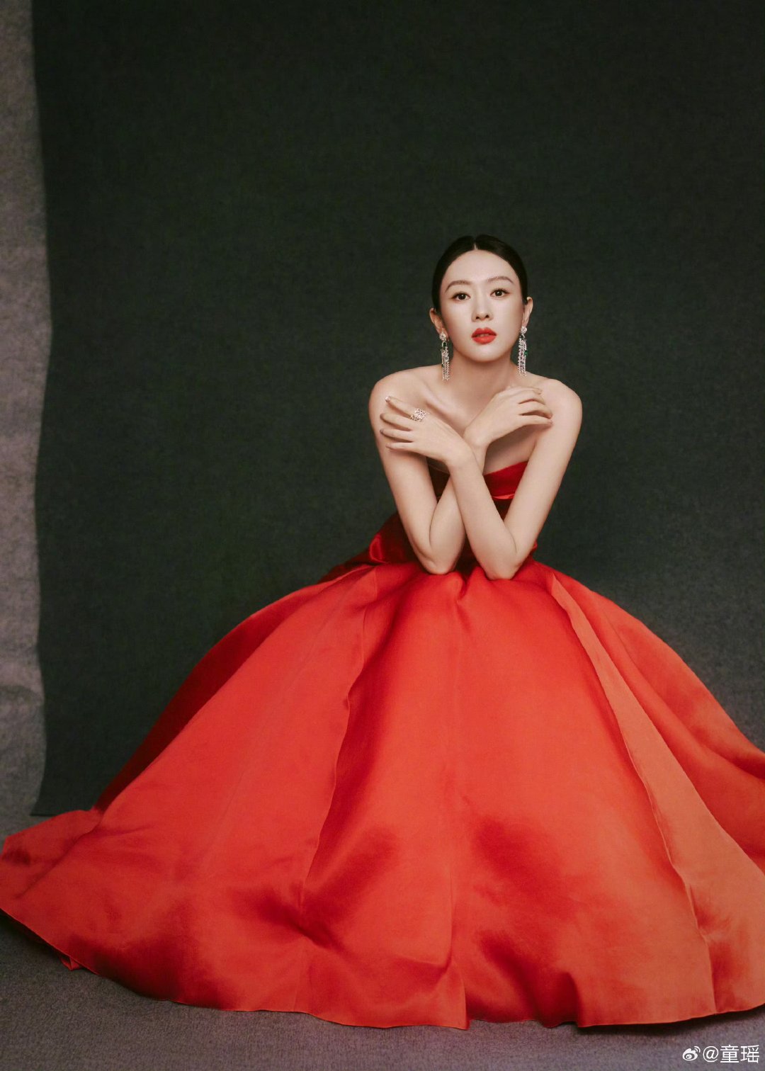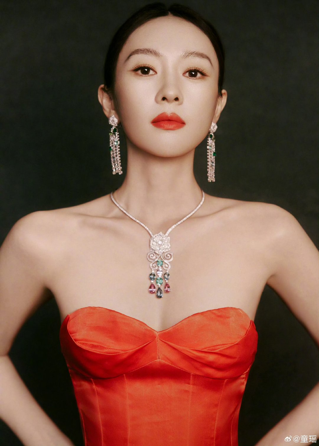 童瑶VOGUE盛典造型童瑶大光明红色抹胸裙造型 童瑶大光明红色抹胸裙造型