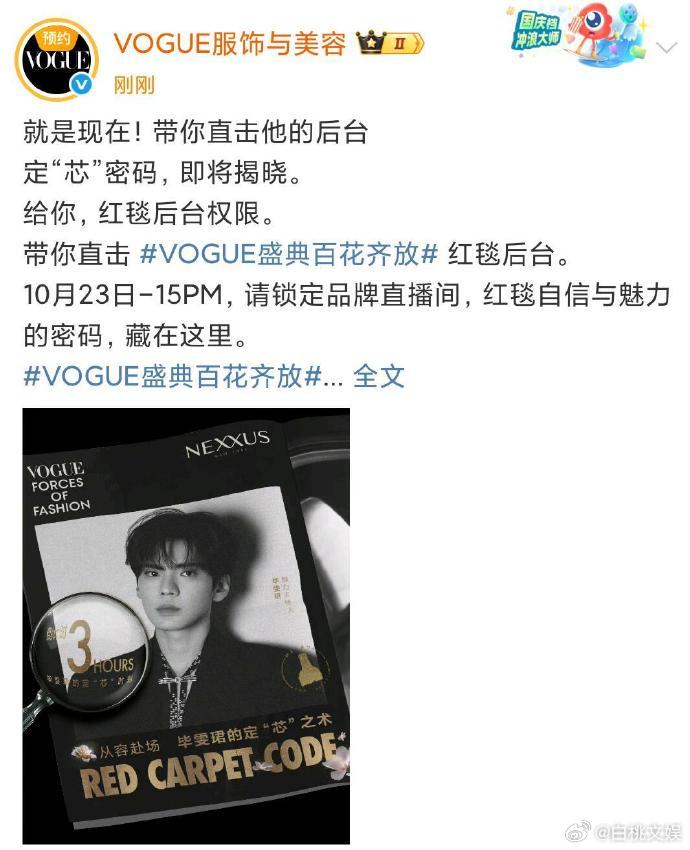 张予曦、毕雯珺担任Vogue后台主持人,且被认可为Vogue魅力主持人。