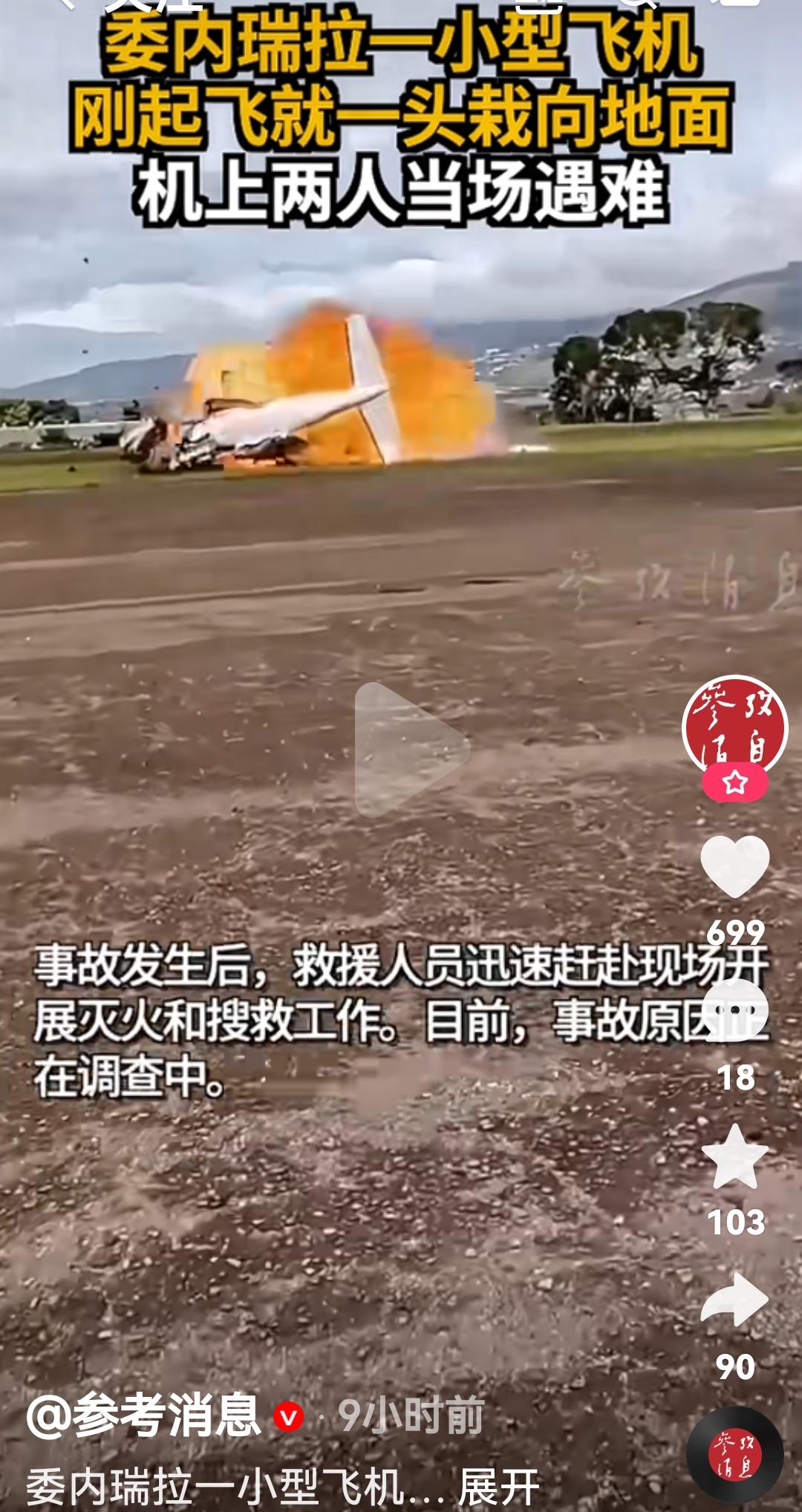 委内瑞拉一小型飞机一起飞就摔到地上了 根据媒体报道,10月22日委内瑞拉南部一个州一架小型飞机在机场起飞后坠毁,机上2名人员遇难,事故发生后,救援人员赶到现场扑火和搜救,事故在调查中 这个世界很奇怪,就是那些资源特别好的国家,发明创造都很差,工业基础也很差,委内瑞拉感觉如果美国对它动手感觉会更惨,因为他们的国防太差了委内瑞拉战局 巴西坠毁事件 委内瑞拉的困境 委内瑞拉冲突 图片来自参考消息视频