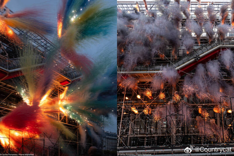 图1:法国巴黎庞比度中心烟火表演《最后的嘉年华》成果照,惨遭中国网友嫌弃。 (合成图片,撷取自Centre Pompidou官网)