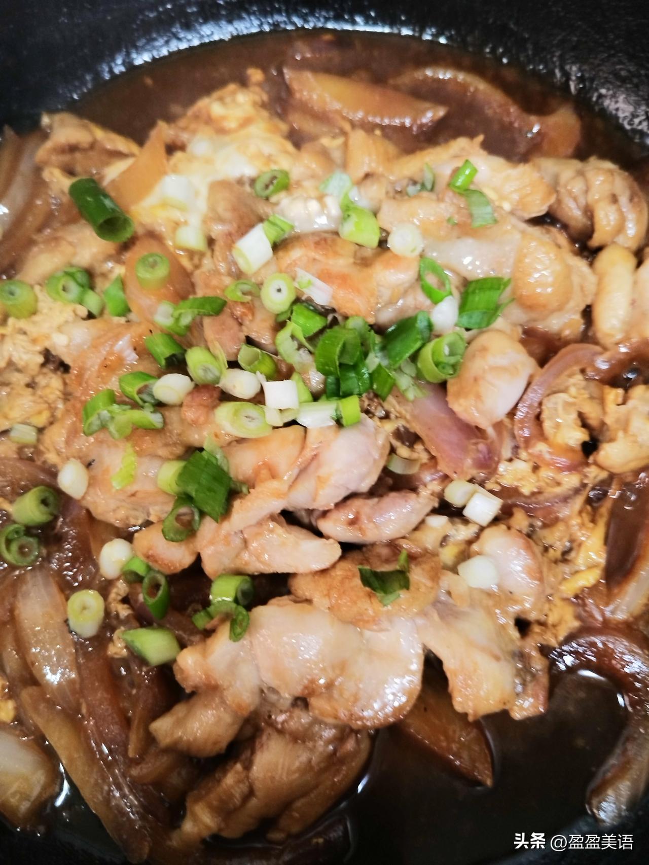 哈,原来鸡腿肉这么做,才是最好吃的呀! 鸡琵琶腿三只,剪开,去骨,这一步我以为我不行,结果非常完美。少许盐腌制半个小时…… 调一个料汁,两勺酱油,半勺老抽,我用的某谨记红烧汁,半勺醋,一丢丢太古白糖。 平底锅放油,皮朝下,煎鸡胸肉,这一步不要乱翻动,但我忍不住,老想看看皮啥样了[捂脸] 皮焦肉香,反过来稍微煎一下,切成小块,锅接着炒洋葱丝。 重新洗干净锅,放入洋葱丝,鸡肉块,浇上调好的汁,放入半碗水,水开放一个鸡蛋,继续收汁,撒上葱花。 一锅色香味俱全的鸡腿饭出锅了。 闻着香味儿,食欲大开,特别适合冬天,有点馋的人吃。 这道菜超级简单,电饭锅同时焖上米饭,半个小时就好了。 有时候,生活就是凑合;有时候,凑合也是精致。比如今天这道菜,原本是凑合的,却没想到成了精致。 所以,无心插柳,有意栽花,南山采菊,东海求仙,花前月下,高山之巅,并无分别。