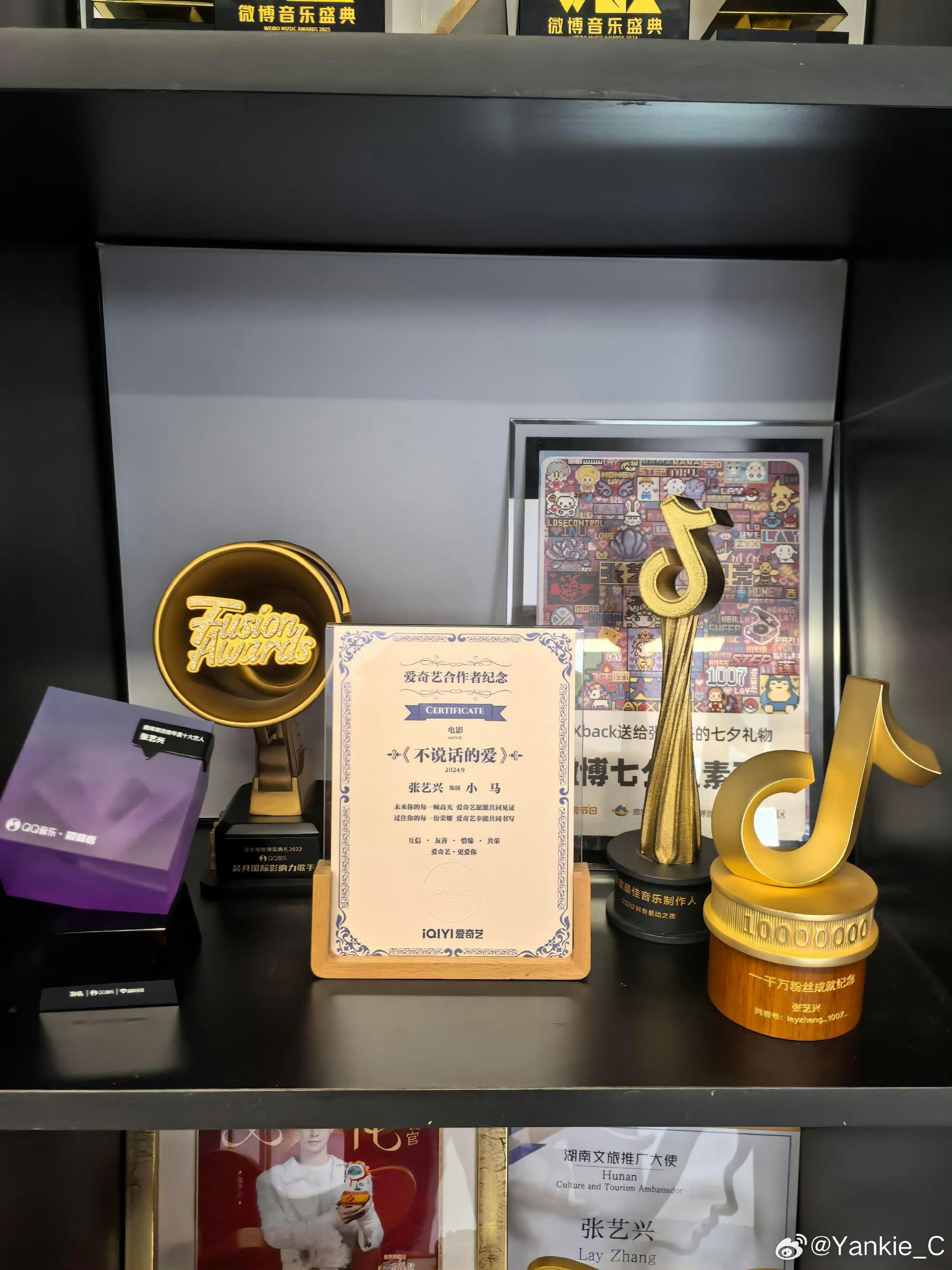 博主去张艺兴工作室参观,被张艺兴满墙的荣耀震惊了,比你优秀的人还比你努力[捂嘴哭]