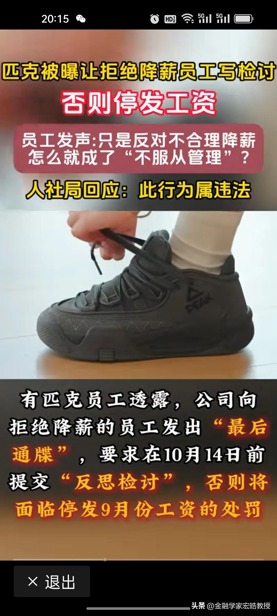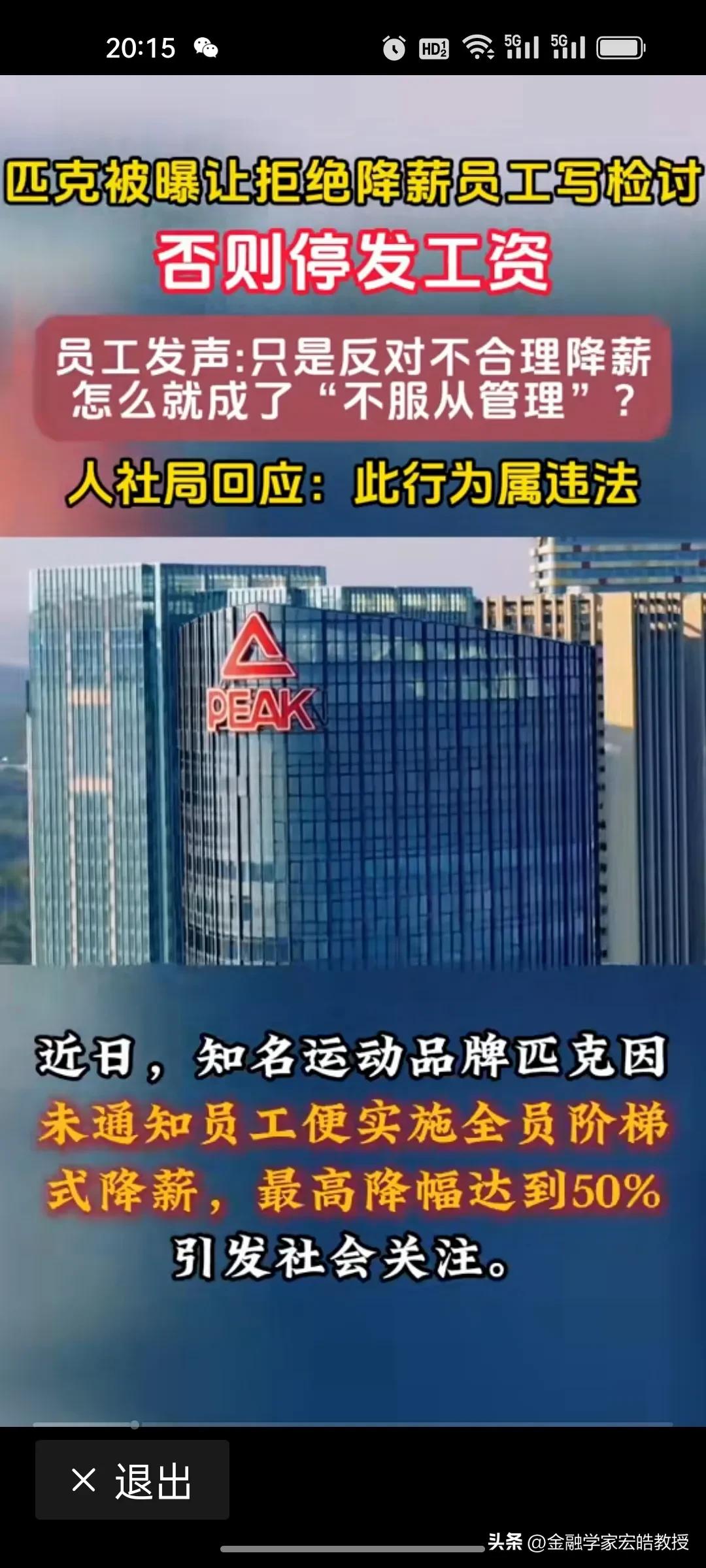 不打招呼就全员阶梯降薪?最高级降50%?不服从就停发工资?真不敢相信这是匹克员工