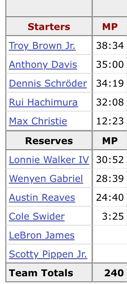 之后,湖人发布了伤病报告,詹姆斯被列为左脚踝酸痛出战成疑,第二天,也就是2月9日,詹姆斯缺席了与雄鹿的比赛,最后雄鹿115-106战胜湖人。