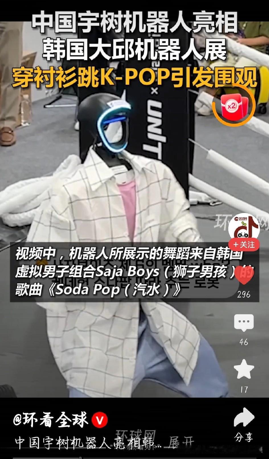 刚刷到宇树机器人在韩国展会的视频,直接看愣了!一个1米8的机器人穿着白衬衫,在K-POP的故乡跳韩舞,动作比真人还丝滑。 扭胯、摆臂、卡点全在线,连衬衫袖子随着动作晃的弧度都特自然,一点没有机器人的僵硬感。现场韩国观众全围过来拍,估计没见过这么会“入乡随俗”的科技狠活。 有网友说它比某些偶像跳得还齐,还有人调侃这是韩国男团新成员。虽说那仿生脸有人觉得有点怪,但架不住舞姿太炸啊! 这哪是机器人表演,分明是中国智造在国外秀肌肉。不得不说,现在的科技真越来越神了!你们觉得这舞跳得咋样?宇树机器人在韩国穿衬衫跳街舞 宇树机器人 机器人跳舞 图片截图于环看全球