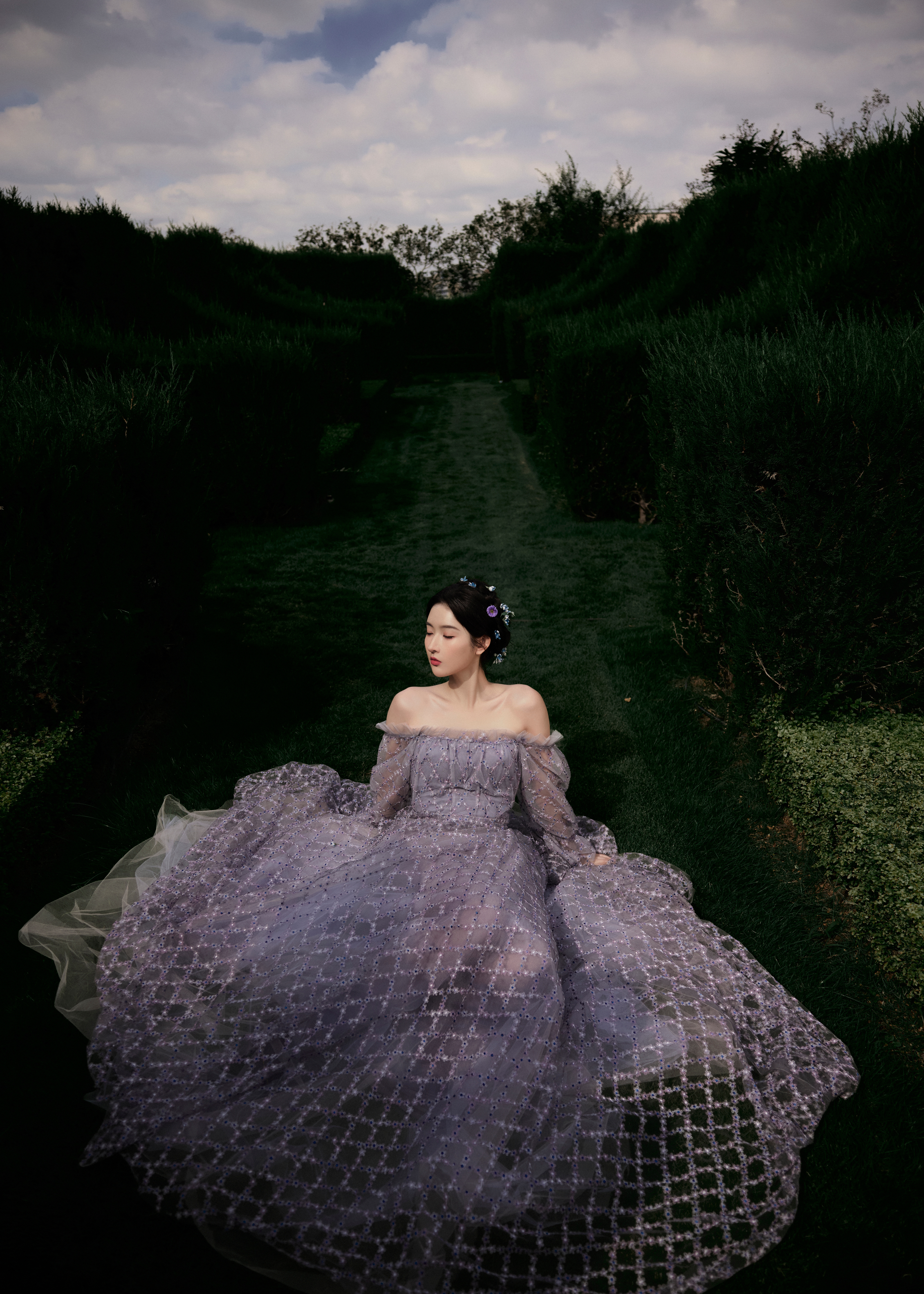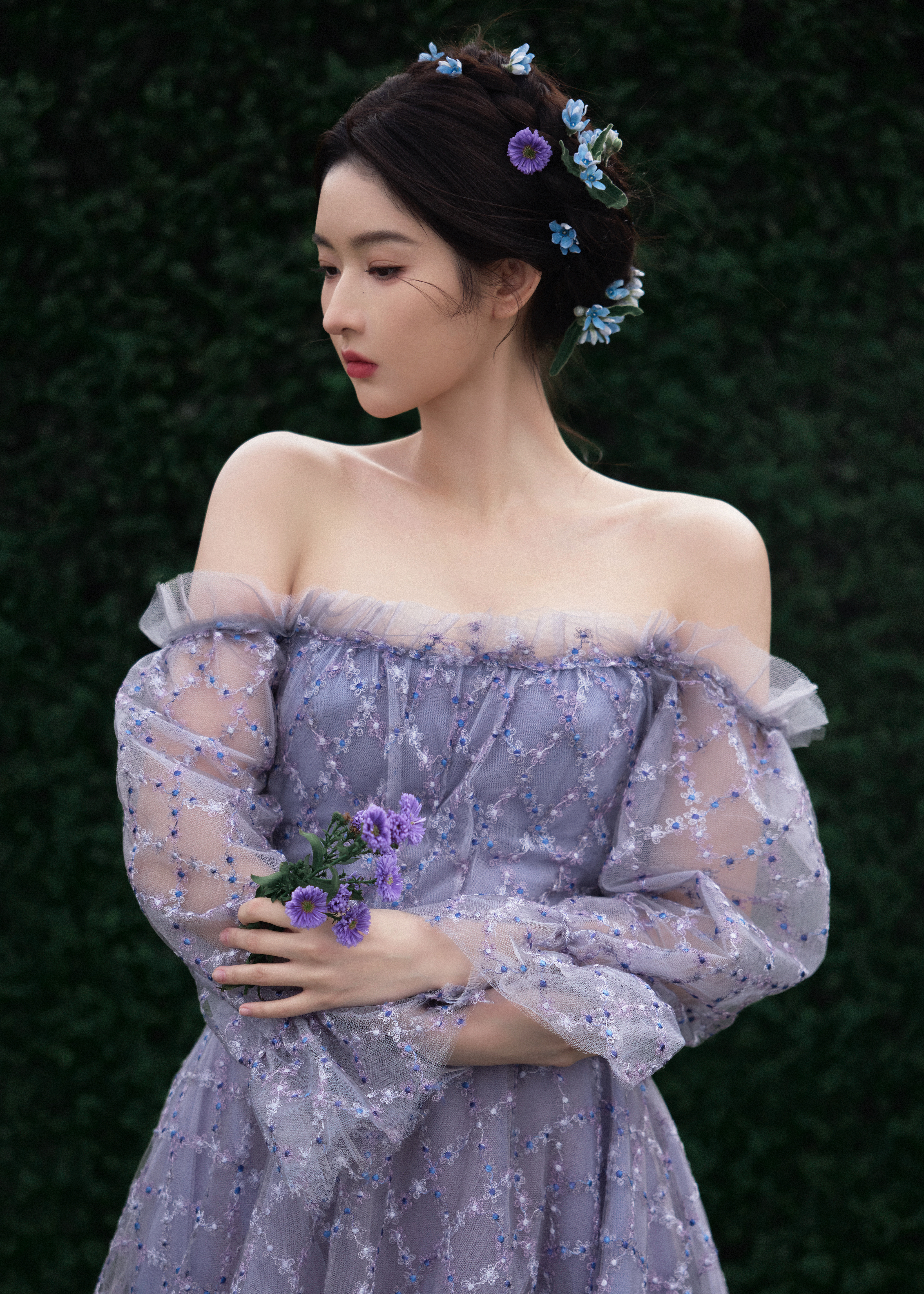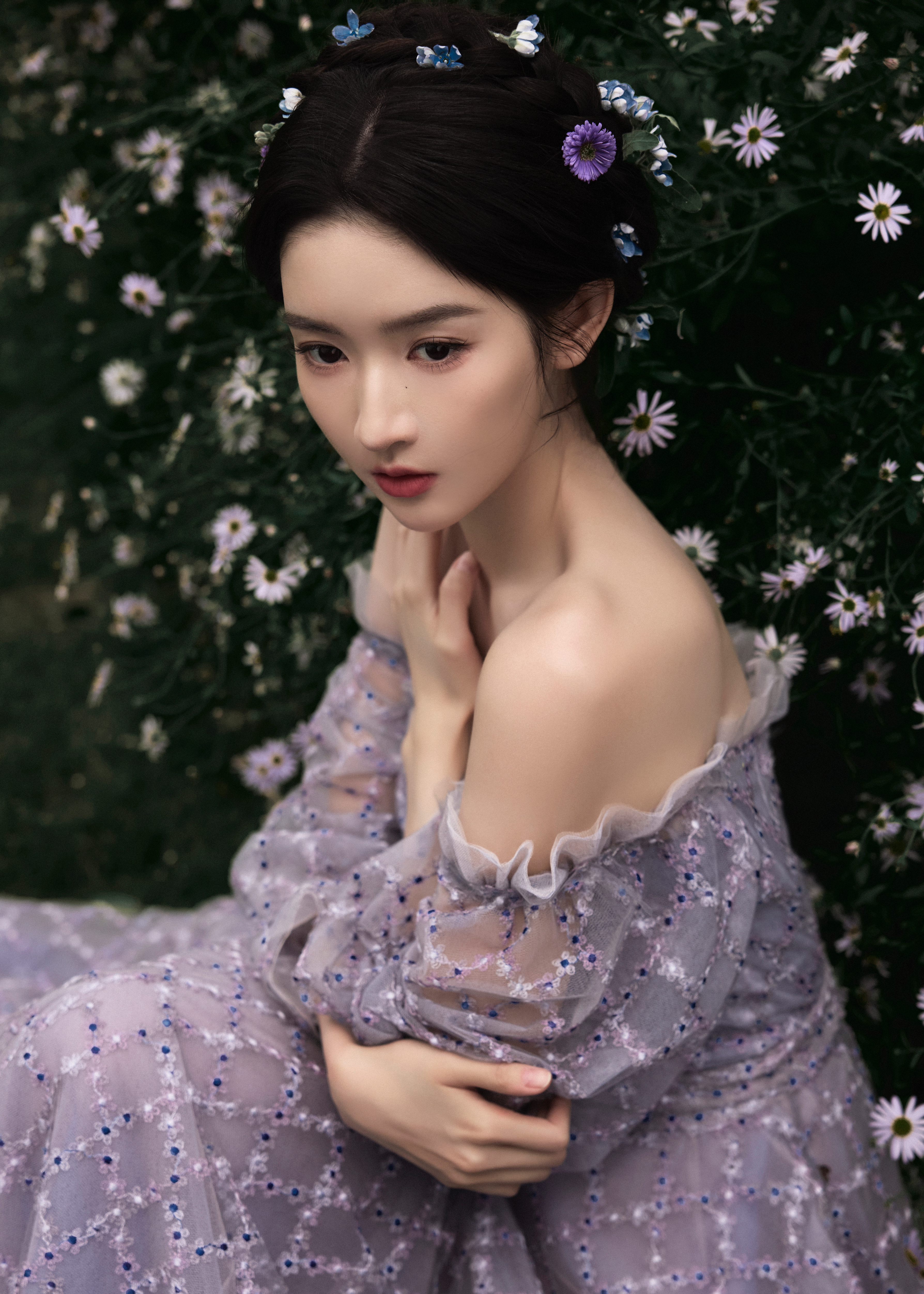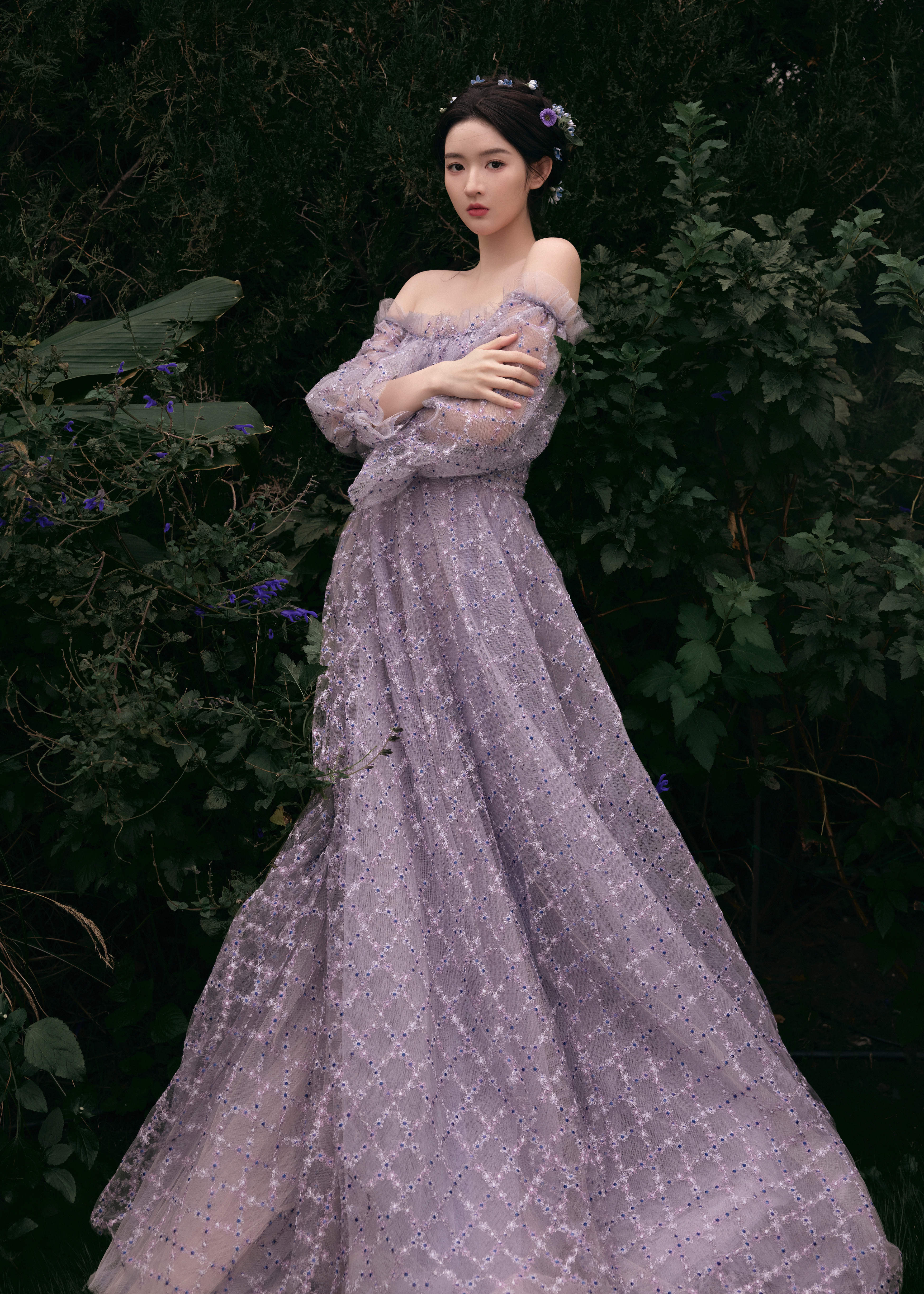 紫雾织就裙裾,花簇别在发梢,王玉雯从绿野的幽梦走出,将一捧柔紫酿成仲夏最清浅的诗行。王玉雯礼服里穿了加绒打底裤王玉雯VOGUE造型