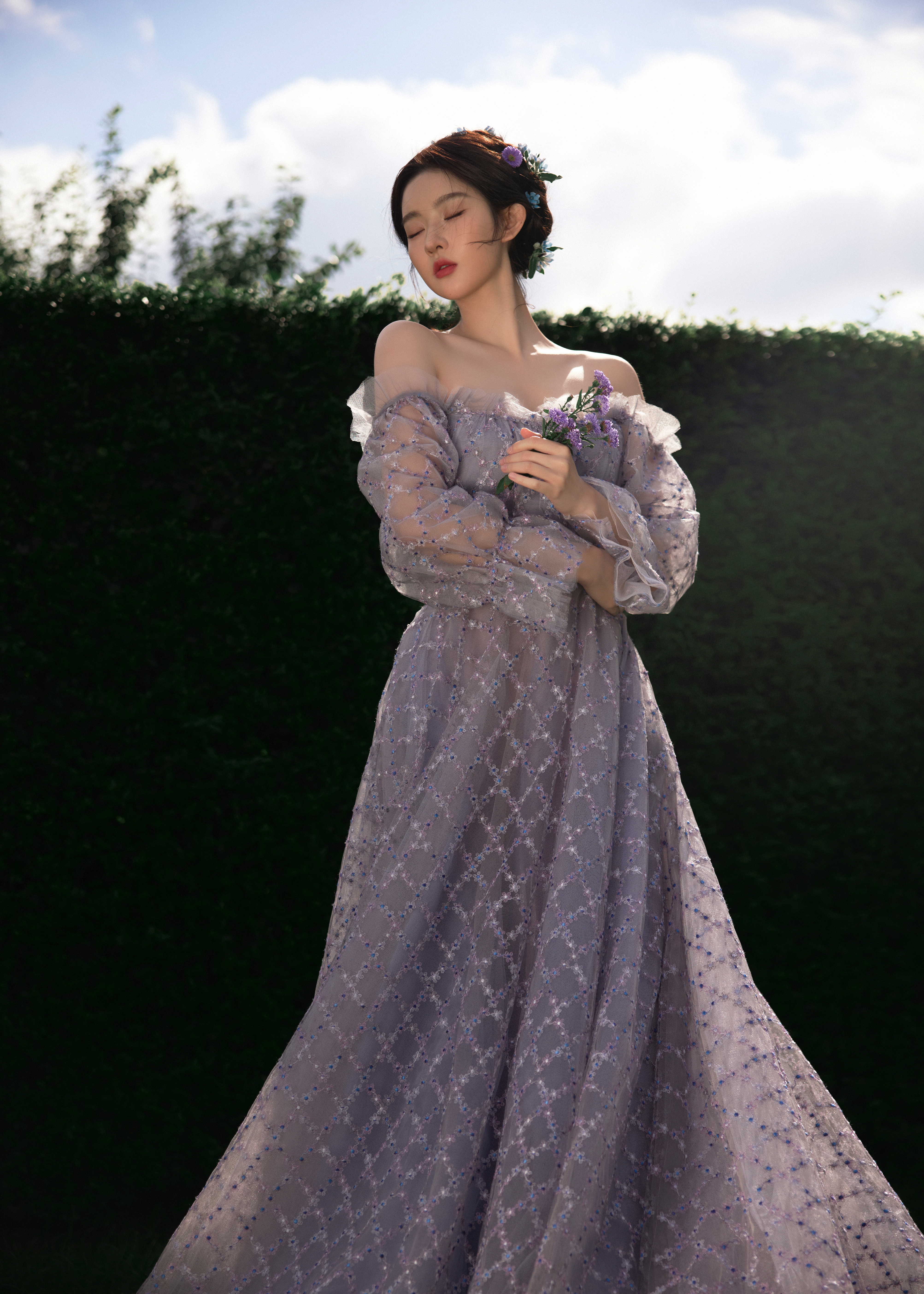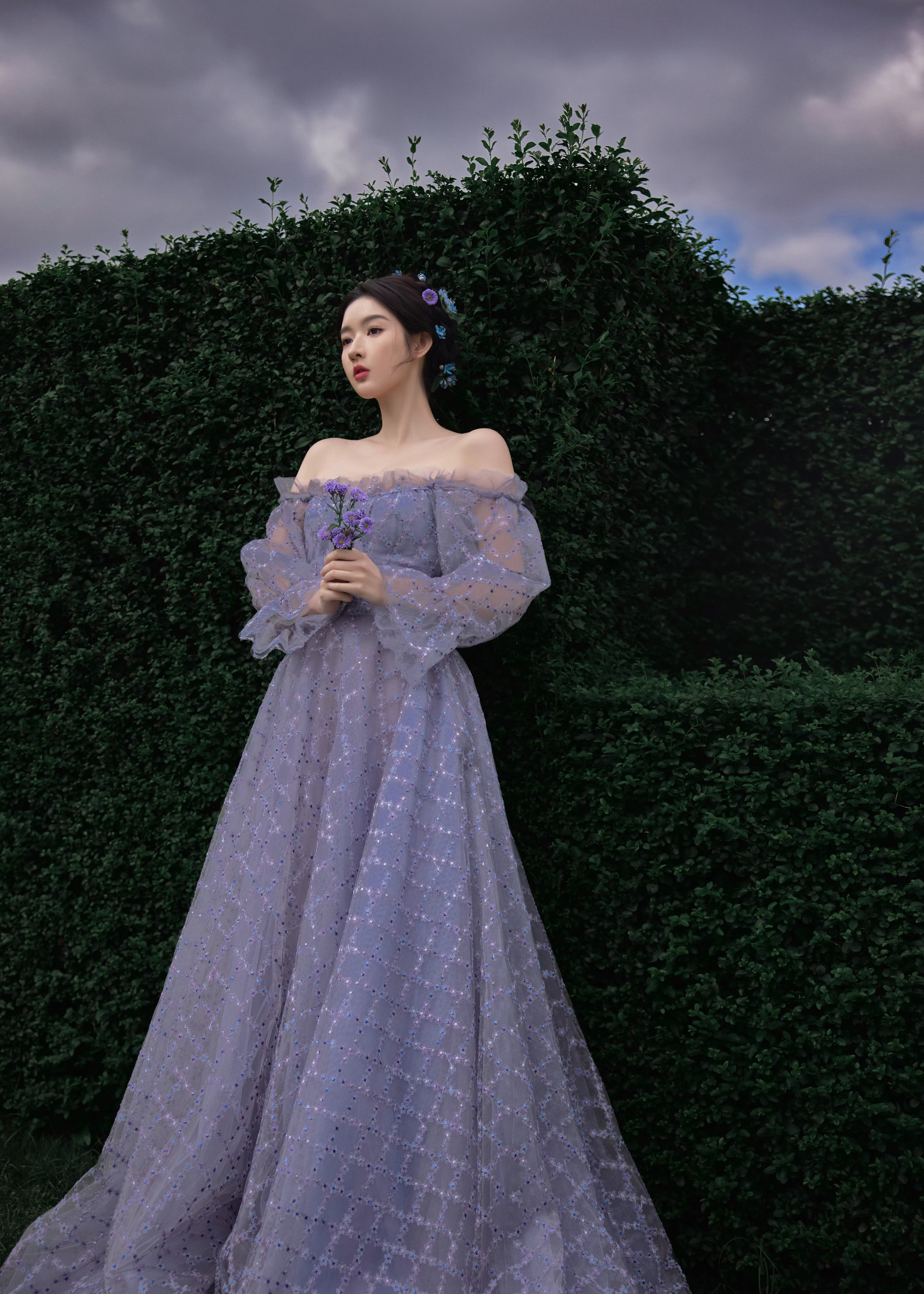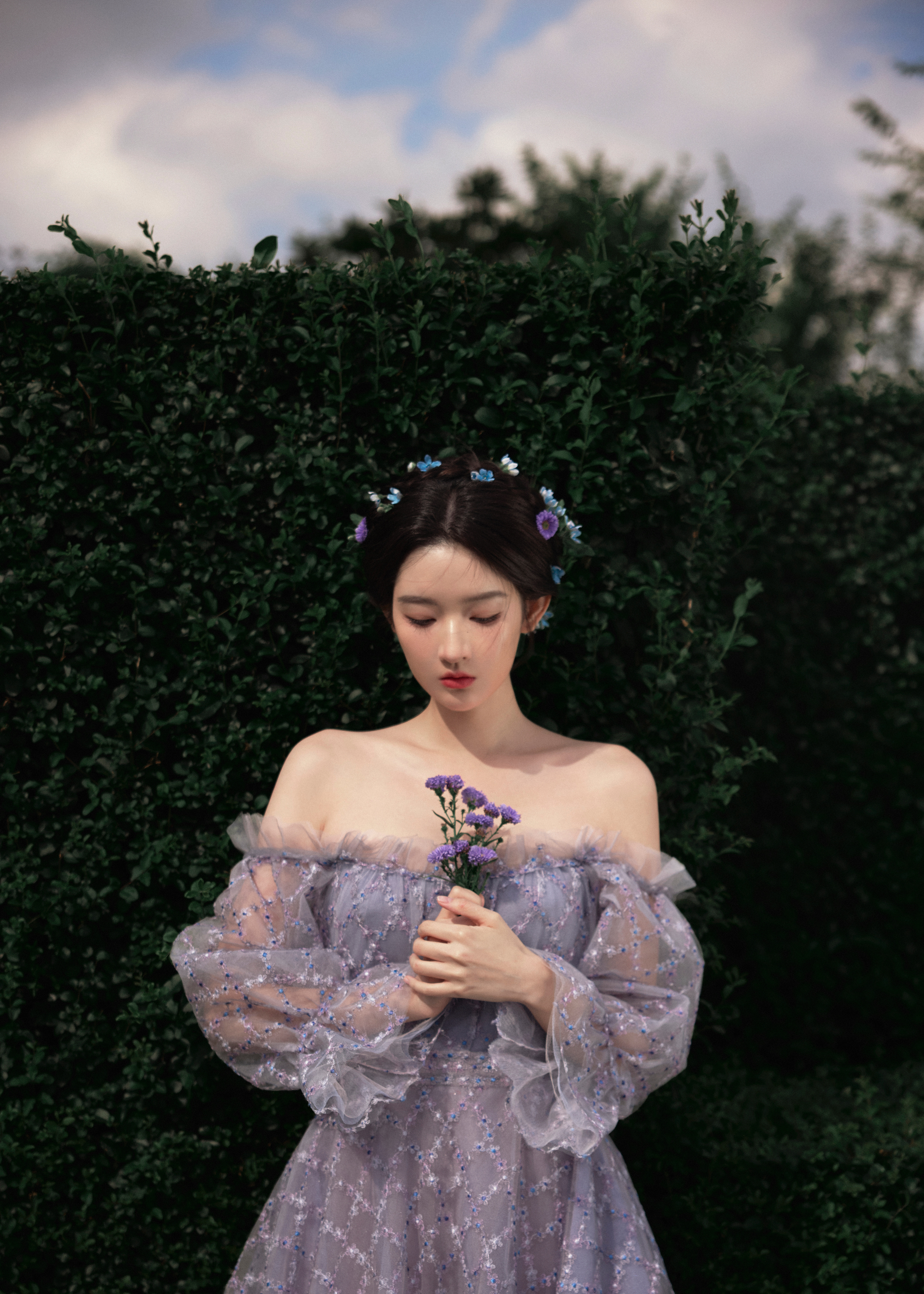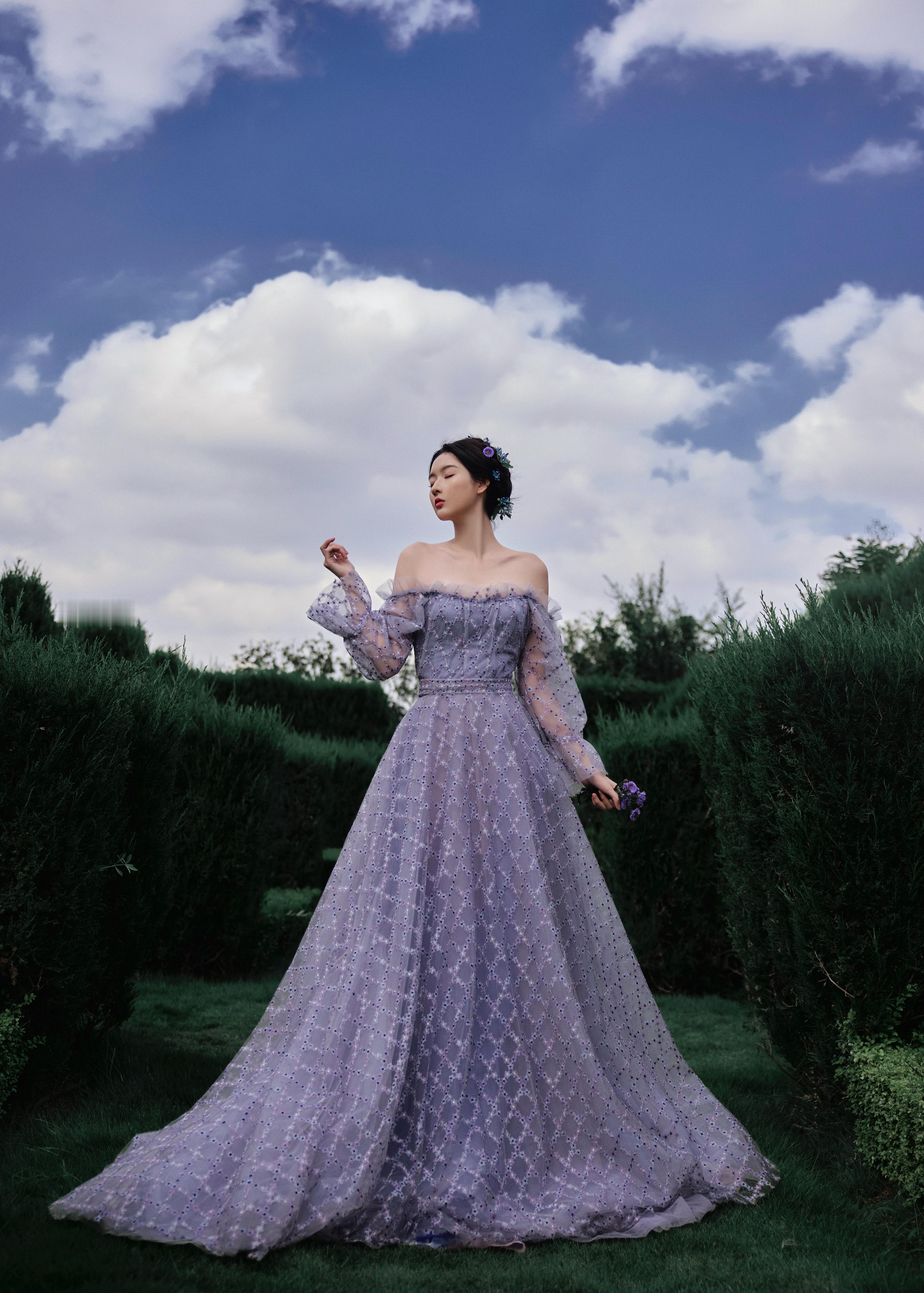 紫雾织就裙裾,花簇别在发梢,王玉雯从绿野的幽梦走出,将一捧柔紫酿成仲夏最清浅的诗行。王玉雯礼服里穿了加绒打底裤王玉雯VOGUE造型