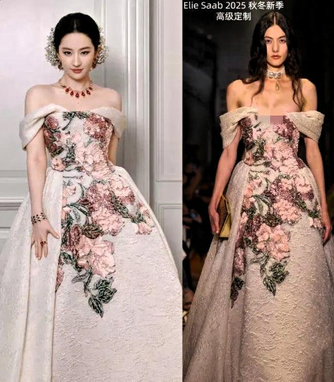 一开始我怀疑是礼服的问题。 到后来我怀疑是发型的问题。 直到刷到模特穿同款礼服的图,我才算彻底服了——哪是造型厉害啊,分明是刘亦菲把高定穿出了“专属感” 昨晚VOGUE盛典一结束,她这套造型直接霸屏了朋友圈。一身2025秋冬Elie Saab高定,配着Bvlgari的高珠,妆容清淡,发型也简单,没搞那些花里胡哨的设计,可往那儿一站,就是挪不开眼。 不是礼服的纱多闪,也不是珠宝的钻多大,是她的肩颈线刚好撑得起礼服的版型,后背线条一露,连礼服的剪裁都显得更高级了;高珠挂在颈间,不抢镜,反倒跟着她的气质,透出股温柔又贵气的劲儿。 再看模特穿同款,只能说“衣服挺好看”,规规矩矩的,却少了点灵气。可刘亦菲穿就不一样,她站在那儿,不刻意凹姿势,连裙摆垂下来的弧度都透着自然的舒展,好像这衣服不是穿在身上,是从她骨子里长出来的,那种人衣合一的契合度,真不是靠造型堆出来的。 以前总听人说“神仙姐姐”,有时还觉得是不是大家情怀重,这回算真真切切get到了:真正的美人,从不是靠大牌撑场面,而是能把大牌穿成自己的“私服”,不用刻意抢镜,却自带主角光环。