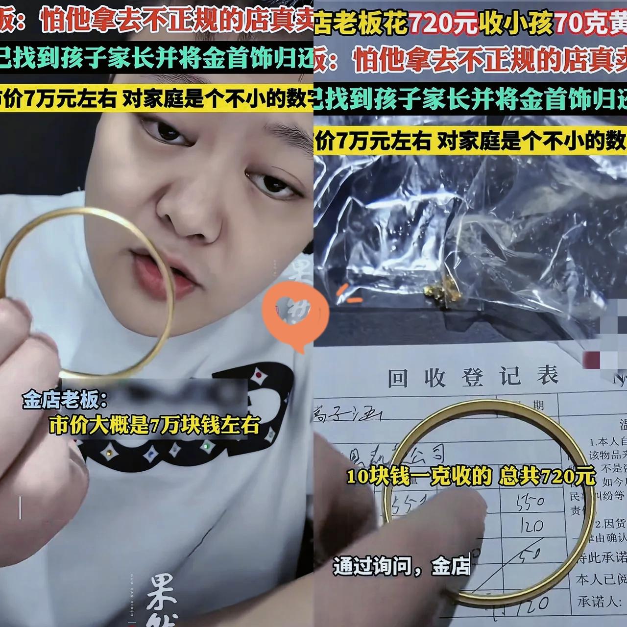雅安金店老板火出圈!面对小孩拿来的70克黄金,他没有盲目回收,反而察觉异常——按市价值7万元的黄金,孩子仅要720元,大概率是偷拿家中财物。 为避免家庭受损、孩子被坑,老板主动联系家长归还,用责任心诠释诚信经营!
