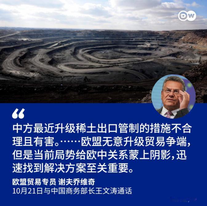 北京时间10月22日,欧盟贸易专员谢夫乔维奇与中国商务部部长王文涛进行了两个小时的通话,谢夫乔维奇表示,王文涛已经接受邀请,将于下周访问布鲁塞尔。 谢夫乔维奇警告称,中国必须“迅速解决”对关键材料出口的限制,这些限制已经阻碍了欧盟部分制造业的发展。7月以来,中国总共收到约2000份申请,但只有半数获批。 欧盟这波操作,简直是把“双标”俩字贴脸上演给大家看!自己天天找借口卡中国的脖子,一会儿限制这个出口到中国,一会儿给中国货进口设门槛,转过头来倒警告中国,让咱们赶紧取消关键材料的出口限制,这逻辑绕得比小区门口的菜市场还乱,合着就许他坑咱,咱连护着自己的东西都不行? 事情是这样的,10月22号那天,欧盟的贸易专员谢夫乔维奇,跟中国商务部部长王文涛通了俩小时电话。通话里谢夫乔维奇说,王文涛已经答应邀请,下周要去布鲁塞尔访问。可他话锋一转就开始施压,说中国必须“赶紧解决”关键材料的出口限制,还说这些限制耽误了欧盟不少制造业的活儿。 他还提了个数据,从7月到现在,中国一共收到差不多2000份出口申请,结果就批了一半。可这事儿本来就是中国按规矩办事啊,咱们依法依规行使自己的权利,欧盟倒好,直接扣上“破坏供应链”的帽子,明摆着是想等王文涛下周去了,再接着施压。 但欧盟咋就忘了自己以前干的事儿呢?今年6月的时候,他们拿“反补贴”当借口,给中国电动汽车加了最高38.1%的关税,直接把中国车企在欧洲的路堵了一截。更早之前,还拿“涉俄”当理由,制裁了19家中国企业,连做卫星技术的公司都没放过,可到最后也没拿出半点证据。他们自己这么搞单边主义,现在倒指责中国“随便限制”,这不就是自己干着一样的事,却不许别人做吗? 更讽刺的是,欧盟一边催着中国开放关键材料,一边自己倒收紧了对中国的技术出口。就说荷兰那个阿斯麦公司吧,专门做半导体设备的,他们老板都吐槽好几回了,欧盟跟着美国学,限制给中国出口光刻机,结果欧洲自己的车企连成熟制程的芯片都不够用了。这种“只许州官放火,不许百姓点灯”的操作,连阿斯麦的CEO都看不下去,直说“不让别人生产你需要的东西,这事儿太不理智了”。 其实中国搞出口管制,根本不是针对欧盟,就是为了国家安全,也是按国际上的惯例来的。就拿稀土来说,咱们对镝、铽这些中重稀土搞出口许可,明明白白要求这些材料只能用在民用上。商务部早就说了,只要是合规的申请,都能走绿色通道。今年前4个月,稀土出口还比去年同期涨了5.1%,这就说明咱们没断了欧盟的供应链,就是把那些可能用到军事上的灰色交易给筛掉了而已。 再看看欧盟,他们对中国材料的依赖程度,比自己想的还深。有数据说,欧盟97%的太阳能板、43.8%的电动汽车电池,都得靠中国供应。更关键的是,在稀土加工这块,中国占了全球58%的专利,提炼成本还只有美国的四分之一。 欧盟自己也试着搞“无稀土永磁体”,可那性能也就达到传统磁体的60%,根本没法替代。他们自己长期不重视产业链建设,现在陷入“卡脖子”的困境,不想着自己解决,倒想靠施压让中国让步,这不是转嫁矛盾吗? 而且中国的出口管制也不是“一刀切”,今年10月9号刚实施的新措施里,只有用于14纳米以下芯片制造的稀土技术,需要一个个审核;像新能源汽车、风力发电这些民用领域,还是敞开供应的。咱们这么精准管控,既护住了国家安全,也没耽误全球产业链,跟欧盟那种把什么都往政治上扯的限制,根本不是一回事。 面对欧盟这种没道理的要求,中国的态度很明确:出口管制是主权国家该有的权利,谁也没资格干涉。就像商务部说的,咱们会继续按规矩审核出口申请,也愿意跟欧盟坐下来对话解决分歧。但有一点必须说清楚:中国不会因为外部施压就放弃自己的利益,更不可能替欧盟的产业政策“买单”。 其实这背后,是全球产业链的深层矛盾。欧盟想靠政治手段保住自己的技术霸权,却不管市场规律,也不补自己的短板;中国则是按法律来,透明公开地维护国家安全,同时也给全球供应链稳定搭了保障。到底谁在破坏规则,时间长了大家都能看明白。