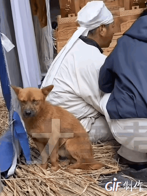 后孩子的主人离开了这个世界,看毛孩子的表情,它似乎已经意识到了主人的离去,在这个场合中,它显得很安静,也显得很孤独,独自躲在角落里,心情感觉也是非常的难过,看宇的眼角好像也有泪痕,实实在在说,毛孩子是非常通人气的,对主人是无比忠诚的,以它强大的嗅觉,它应该已经知道主人不在了!
