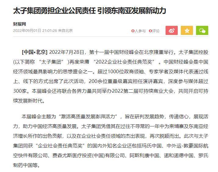 被美国认定为诈骗集团的柬埔寨太子集团前不久在我国国内居然获得了“2022企业社会责任典范奖”,真的是太讽刺了! 太子集团官网到现在还挂着陈志的“励志故事”,说他是从广东农村出来的穷小子,靠搞房地产、做金融投资白手起家,在30多个国家搞出了千亿规模的商业帝国。可美国司法部拿出的证据直接把这层皮撕了,他们嘴上说“帮东南亚解决就业”,实际上是用高薪骗年轻人偷渡到柬埔寨,关在围着铁丝网的园区里搞“杀猪盘”。 就2024年一年,他们光社交账号就弄了7万个,一天就能骗走3000万美元,被骗的人从中国、美国到泰国,足足17个国家都有。更让人觉得讽刺的是,他们旗下还有个太子银行,表面说帮普通人搞普惠金融,背地里却是用加密货币洗黑钱,2025年这一年,光被冻结的比特币就值150亿美元。 最让人越想越怕的是,这诈骗集团特别会装,把干坏事包装成做慈善。2021年他们还去参加第十届中国财经峰会,拿了“企业社会责任典范奖”,当时颁奖的还夸他们“帮东南亚搞基建”“捐钱支持教育”。 可泰国警察一查才知道,他们说的那些“慈善项目”,根本就是用骗来的钱在金边盖了几所学校,真实目的是给搞电诈的园区当掩护。更坏的是,集团高层还跟当地官员勾结,用“投资”换人家给他们当保护伞,连泰国司法部长都承认,这事可能牵扯到东南亚好几个国家的官商关系网,水特别深。 这次美国和英国一起动手,才算把太子集团的黑幕掀开了一角。美国财政部直接制裁了他们146个关联公司,英国也冻结了他们在伦敦的19套房子,连柬埔寨航空公司这种帮他们打掩护的“白手套”也被揪了出来。 但更该琢磨的是,这种犯罪集团为啥能在东南亚随便折腾?表面看是当地监管有漏洞,其实是背后有灰色的利益链在撑腰。就像泰国警察说的,太子集团的钱能流进当地的上市房地产公司,说明他们背后的关系网盘根错节,特别复杂。要想彻底把这种毒瘤去掉,光靠一个国家的警察和法院还不够,得全世界一起建个反诈的机制,让这些坏人没地方躲。 太子集团这事儿也给所有国家提了个醒:现在全球联系这么紧密,资本装好人的本事越来越高了。有些企业打着“一带一路”的旗号搞投资,实际就盯着法律的空子,在边上试探;有些富豪捐几个亿盖学校,转头就用慈善基金洗黑钱。 所以监管部门得擦亮眼睛,不能光听企业说得多好听,更得查清楚他们的钱从哪儿来、又花到哪儿去。毕竟,真的承担社会责任是扎扎实实干好事,不是把奖杯挂墙上当摆设。 现在太子集团的“商业神话”已经破了,但跟这类似的事儿说不定还在暗处发生。当跨国犯罪披上“慈善”的外衣,当诈骗集团学会用拿奖来洗白自己,咱们每个人都该多问一句:这么光鲜亮丽的背后,到底藏着多少没人知道的坏事?