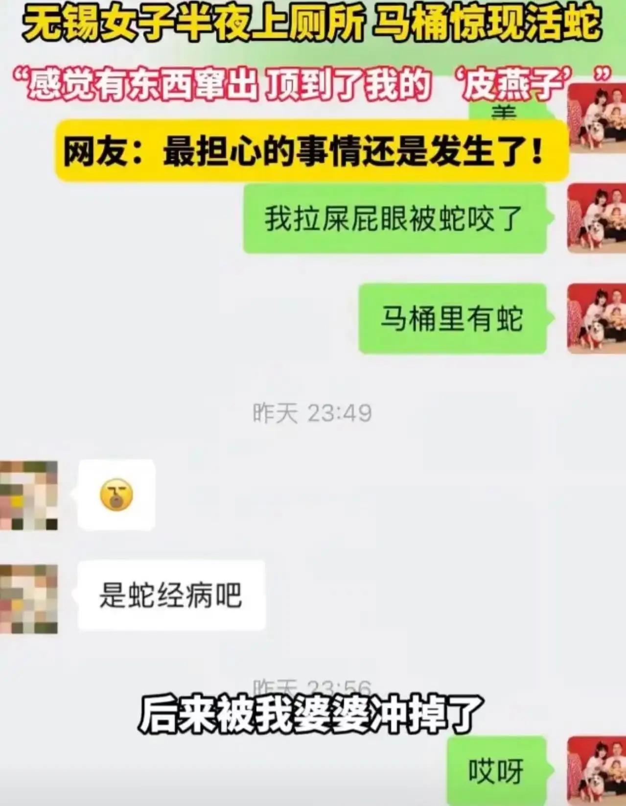 深夜惊魂!无锡,女子半夜上厕所,突然感觉有东西顶自己的“屁眼”,女子回头一看,吓得裤子都没提,就跑出厕所喊婆婆。原来,一条蛇居然通过下水道从马桶里钻了出来!这场惊魂一幕,瞬间点燃了网友们的热议,也让人不禁开始反思:我们每天习以为常的生活中,隐藏着多少看不见的危险?又有多少“潜伏的威胁”正悄悄潜入我们的日常? 其实,这不仅仅是一条蛇的“闯入”,更像是一面镜子,折射出我们对安全的忽视和对细节的疏忽。很多人习惯了“马桶就是马桶”,却没有意识到,城市排水系统的隐患可能远比想象中更大。蛇通过下水道钻出来的新闻屡见不鲜,背后隐藏的,是城市管理、居民生活习惯甚至是环境保护的深层次问题。 更令人深思的是,女子的反应——她没有冷静应对,而是惊慌失措,直接跑出厕所呼救。这一瞬间,暴露出我们的应急意识和应变能力的不足。面对突发事件,冷静、科学的应对远比慌乱更重要。而婆婆的“错误做法”,更是让事情雪上加霜:她试图用“传统办法”解决,结果只让情况变得更复杂。 这场“深夜惊魂”其实也是一面镜子,映照出我们在日常生活中,是否真的重视每一个细节?是否对潜在的危险保持警惕?更重要的是,面对突发事件,是否具备正确的应对之道?很多时候,我们习惯了“事不关己”的心态,却不知道下一秒可能就会成为“受害者”。 或许,这次事件会成为一个警钟,让我们重新审视生活中的安全隐患。不要等到“危险”真的来了,才惊觉“防范”其实早已应该到位。城市的每一条排水管、每一个细节,都关系到我们的安全。我们需要的,不仅仅是“事后反思”,更是“事前预防”。 这起事件,也让我们不禁想问:在日常生活中,你是否也有忽视的细节?你是否也曾因为一时的疏忽,错过了预防的最佳时机?也许,下一次,你我都应该多一份警觉,多一份责任感。毕竟,安全无小事,细节决定成败。让我们共同关注生活中的每一个角落,为自己,也为家人的安全,筑起一道坚不可摧的防线。 深夜惊魂!无锡,女子半夜上厕所,突然感觉有东西顶自己的“屁眼”,女子回头一看,吓得裤子都没提,就跑出厕所喊婆婆。原来,一条蛇居然通过下水道从马桶里钻了出来!这场惊魂一幕,瞬间点燃了网友们的热议,也让人不禁开始反思:我们每天习以为常的生活中,隐藏着多少看不见的危险?又有多少“潜伏的威胁”正悄悄潜入我们的日常? 其实,这不仅仅是一条蛇的“闯入”,更像是一面镜子,折射出我们对安全的忽视和对细节的疏忽。很多人习惯了“马桶就是马桶”,却没有意识到,城市排水系统的隐患可能远比想象中更大。蛇通过下水道钻出来的新闻屡见不鲜,背后隐藏的,是城市管理、居民生活习惯甚至是环境保护的深层次问题。 更令人深思的是,女子的反应——她没有冷静应对,而是惊慌失措,直接跑出厕所呼救。这一瞬间,暴露出我们的应急意识和应变能力的不足。面对突发事件,冷静、科学的应对远比慌乱更重要。而婆婆的“错误做法”,更是让事情雪上加霜:她试图用“传统办法”解决,结果只让情况变得更复杂。 这场“深夜惊魂”其实也是一面镜子,映照出我们在日常生活中,是否真的重视每一个细节?是否对潜在的危险保持警惕?更重要的是,面对突发事件,是否具备正确的应对之道?很多时候,我们习惯了“事不关己”的心态,却不知道下一秒可能就会成为“受害者”。 或许,这次事件会成为一个警钟,让我们重新审视生活中的安全隐患。不要等到“危险”真的来了,才惊觉“防范”其实早已应该到位。城市的每一条排水管、每一个细节,都关系到我们的安全。我们需要的,不仅仅是“事后反思”,更是“事前预防”。 这起事件,也让我们不禁想问:在日常生活中,你是否也有忽视的细节?你是否也曾因为一时的疏忽,错过了预防的最佳时机?也许,下一次,你我都应该多一份警觉,多一份责任感。毕竟,安全无小事,细节决定成败。让我们共同关注生活中的每一个角落,为自己,也为家人的安全,筑起一道坚不可摧的防线。