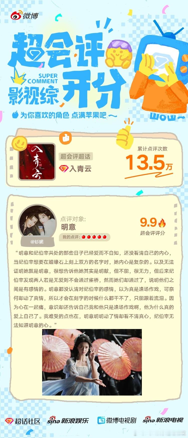 [鼓掌]更多新剧超会评即将上线,欢迎uu们输出对角色的优质点评,活动发起请关注每月月初公布的活动PR!