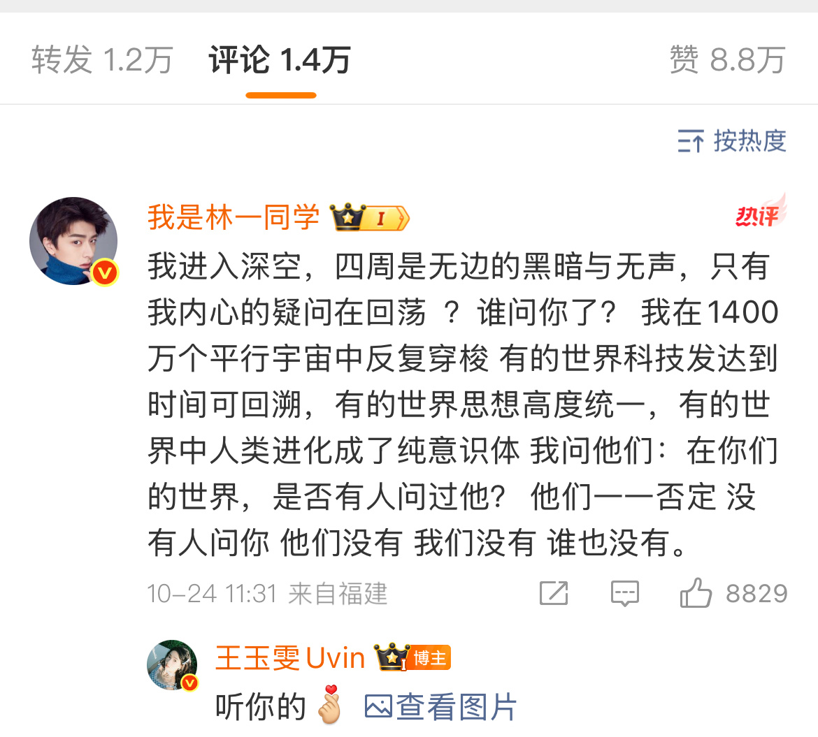 真的很像争风吃醋哈哈哈哈哈林一王玉雯好像在为刘亦菲争风吃醋林一评论了王玉雯