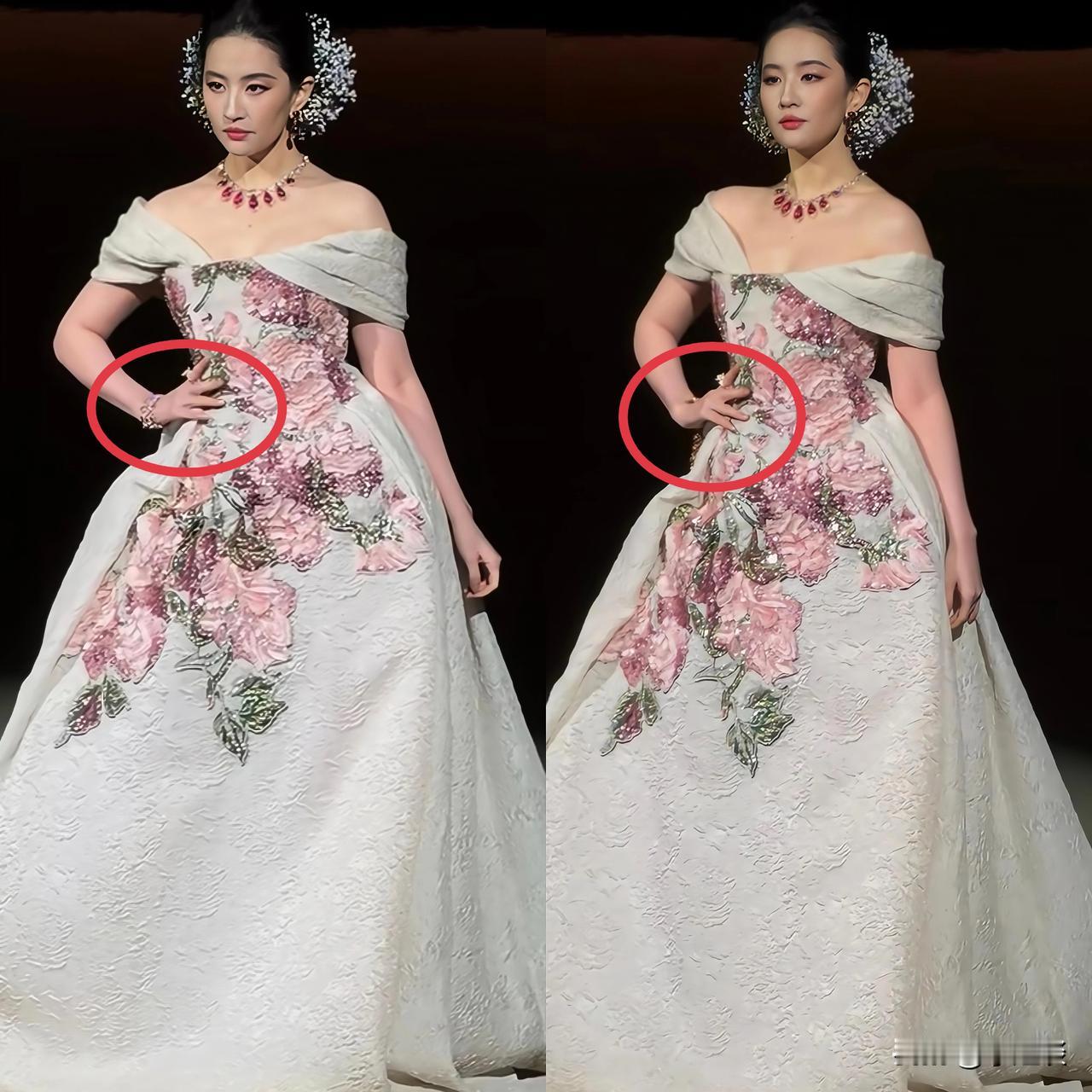 刘亦菲Vogue压轴出场我不意外,她被夸赞走路像菲皇我也不惊讶,最让我惊叹佩服的,是她面对突发情况的快速应变能力。 刘亦菲走台时,手上戴的手链突然松开了,她非常自然的用手指勾在手心里,她的表情和眼神一点没被影响,仍旧气定神闲,一副掌控大局的云淡风轻样。 等她走到台中央助理扶她的时候,她顺手将手链给了助理。当时助理都懵了一下,完全没发现刘亦菲手上有手链,后来才反应过来。小编要不是仔细看回放,也根本发现不了她手链有掉这一事。 还有个细节,不知道大家有没有注意到。小编本来以为刘亦菲头上戴的是珠宝,后来仔细看才发现居然是满天星,没想到女神就在头上插点满天星都可以这么美。 如果你看过现实中的刘亦菲,你会发现刘亦菲根本不上镜,她本人更美,骨相美更强。那些说她胖的,可以去看看现实中的她,真的一点都不胖。 有见过她的网友如此评价她:我线下见过刘亦菲本人,只恨设备太菜了,真对不起她的神颜,尤其是那种白到冲击视觉的皮肤和那小巧极了的脸,小小的脸上,全是精雕细琢的五官,特别立体。 刘亦菲不仅气质好,皮肤保养也很好,你仔细观察她的脸蛋,会发现她的脸就像刚剥了壳的鸡蛋白皙嫩滑,她的眼睛也很亮。总而言之,她简直就是上天赏饭吃的存在。