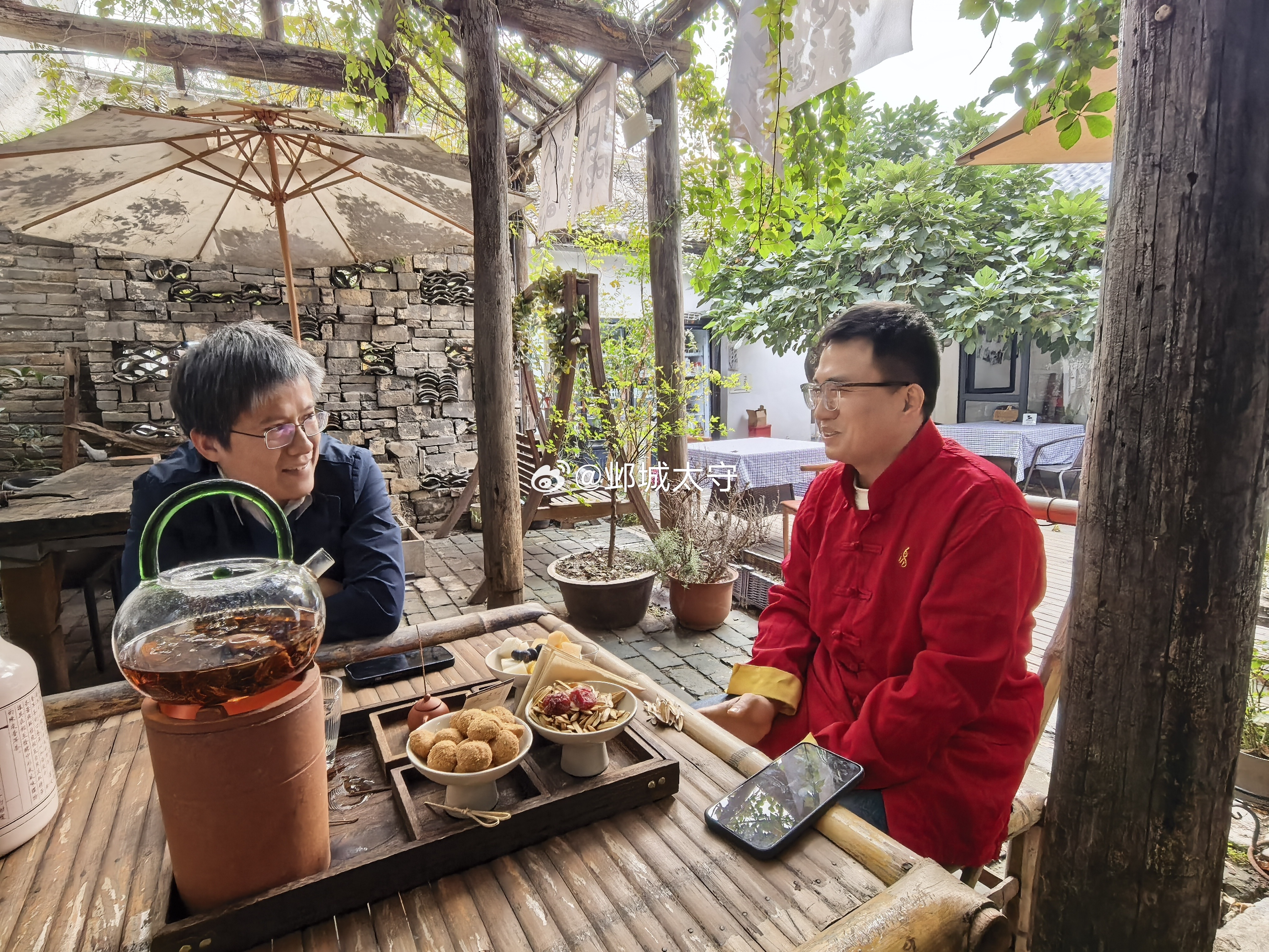 秋日凉意渐重,小院煮茶闲叙。