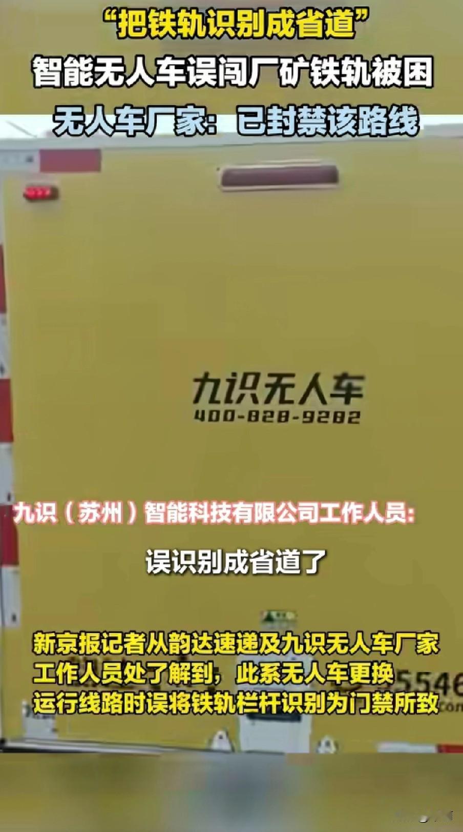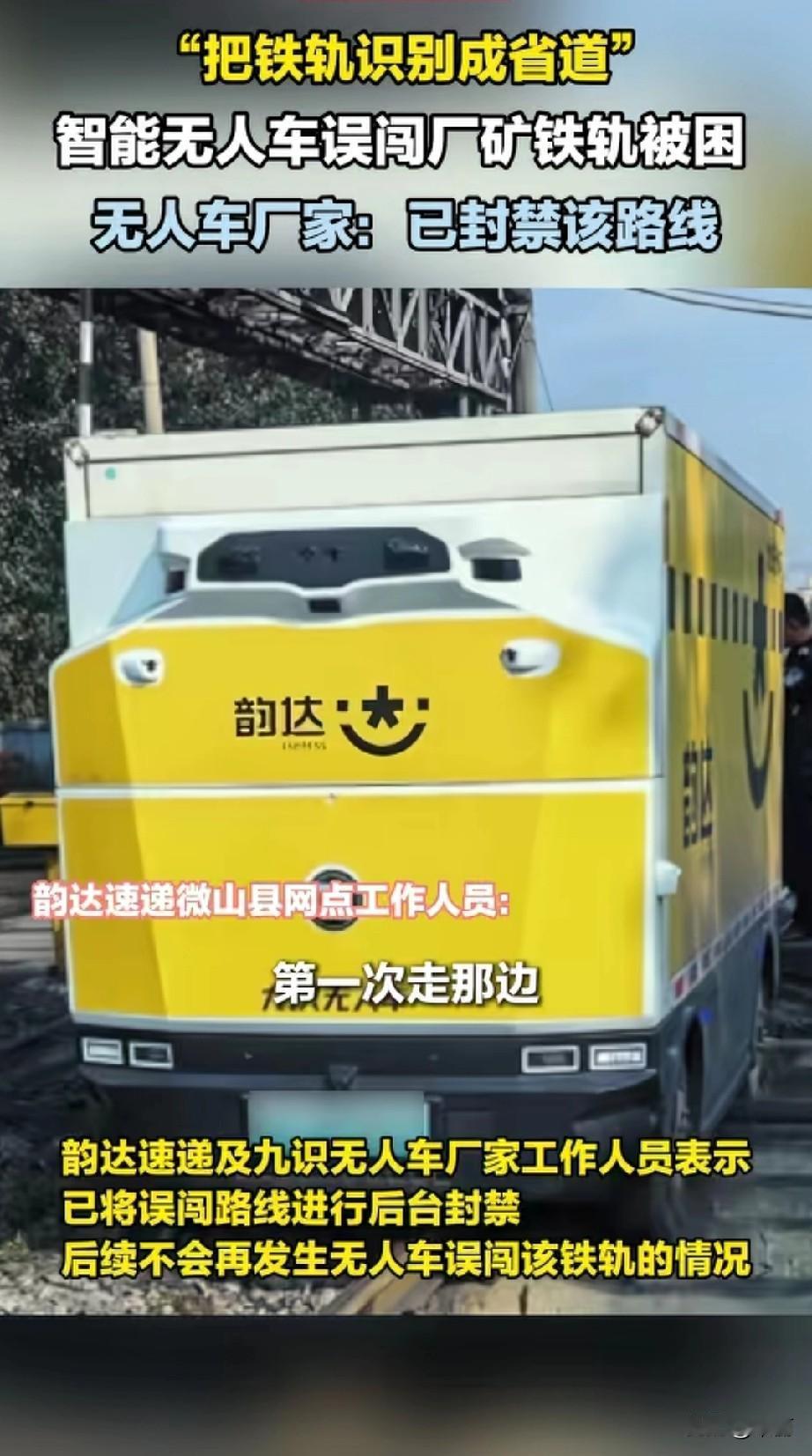 山东济宁有网友拍视频,韵达的快递智能无人车闯进铁轨里卡住了。 厂家说是换路线时,把铁轨认错成省道,还把铁轨栏杆当成了门禁。好在当时没火车,后台发现后赶紧叫拖车弄走了,现在已经封了这条路线,更新了数据。 这事儿看着好笑,其实挺让人担心的。智能无人车连铁轨和马路都分不清楚,暴露了技术短板,复杂路况下很容易出问题。之前也有其他地方的无人车发生碰撞、拖行电动车的事。 技术迭代难免有试错,但无人车跑在路上,安全是第一位的。不能等出了危险才补救,得多在复杂场景里练技术,把安全关把严点,不然大家真没法放心。